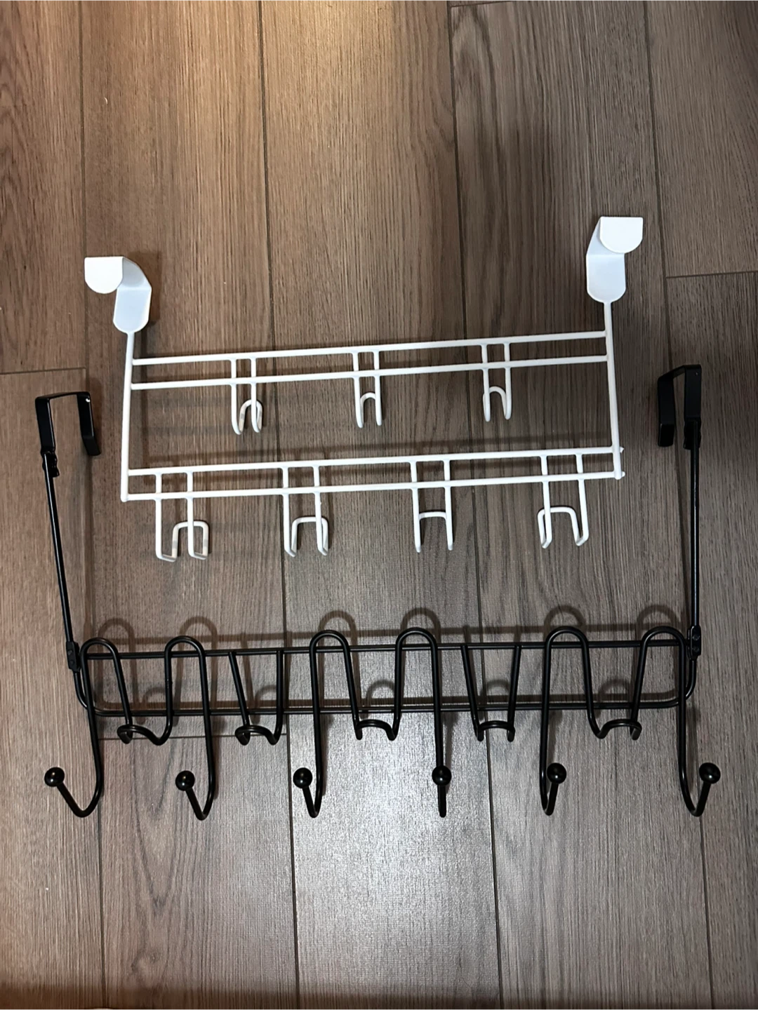 Selling two over-the-door hook racks. One is white and the other is black. Great for adding extra hanging space in your closet or bathroom