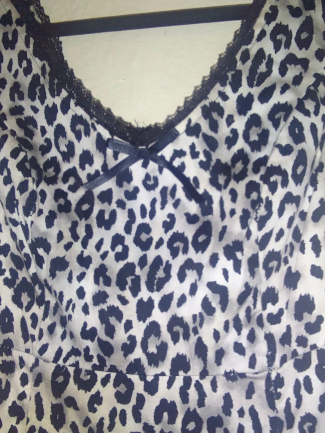 Cute leopard black and white print dress! It's in great condition and ready for a new owner. Perfect for a casual day out or dressing up for a night out. Fall in love with this one! Add a belt for a glamorous look!