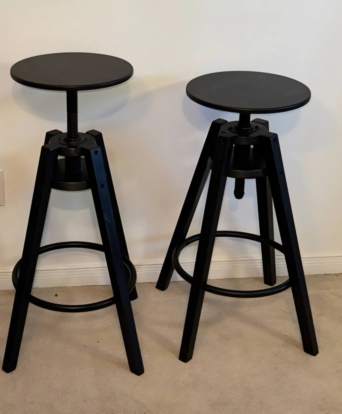 Set of 2 Black Adjustable Height Bar Stools New Each $70