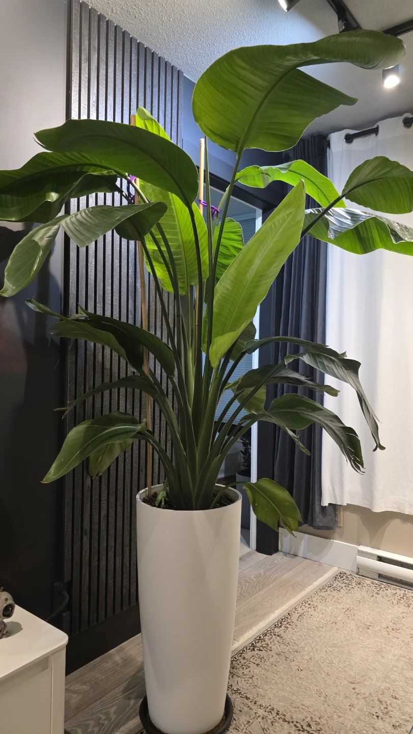 Selling a beautiful Bird of Paradise plant! It comes in a stylish white pot and would look great in any home. The plant is healthy and well-cared for, ready to bring a touch of the tropics to your space