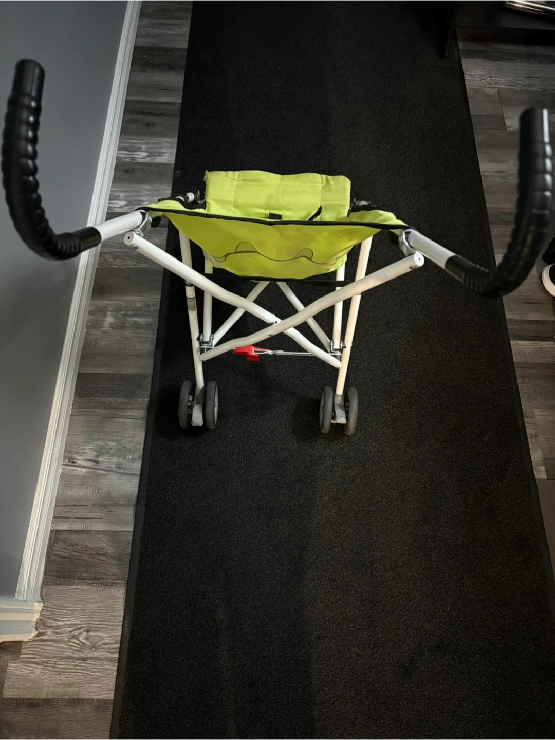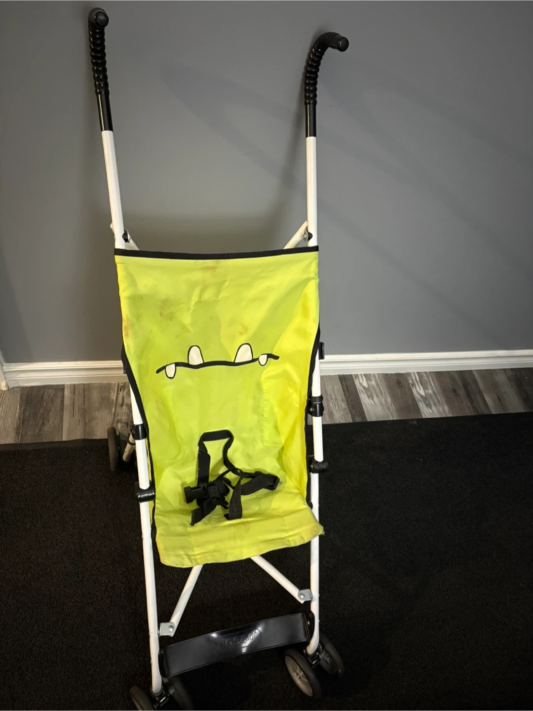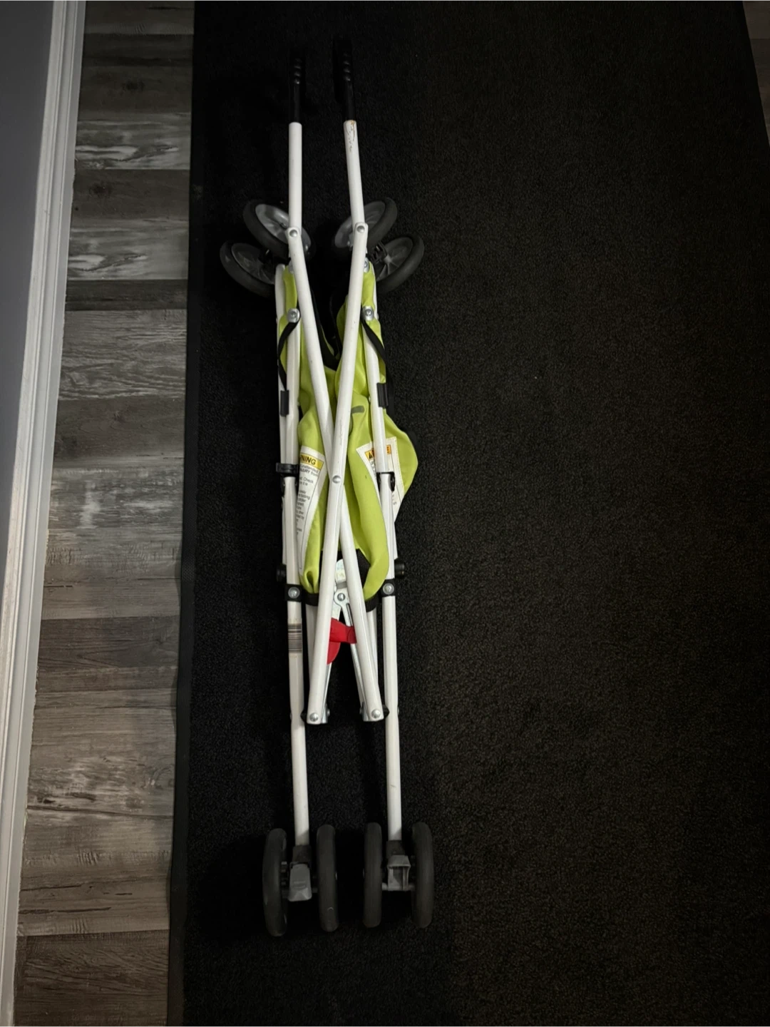 Selling a lightweight travel stroller in a bright green colour! It's perfect for travel and folds up easily for storage. Great for taking your little one on the go!