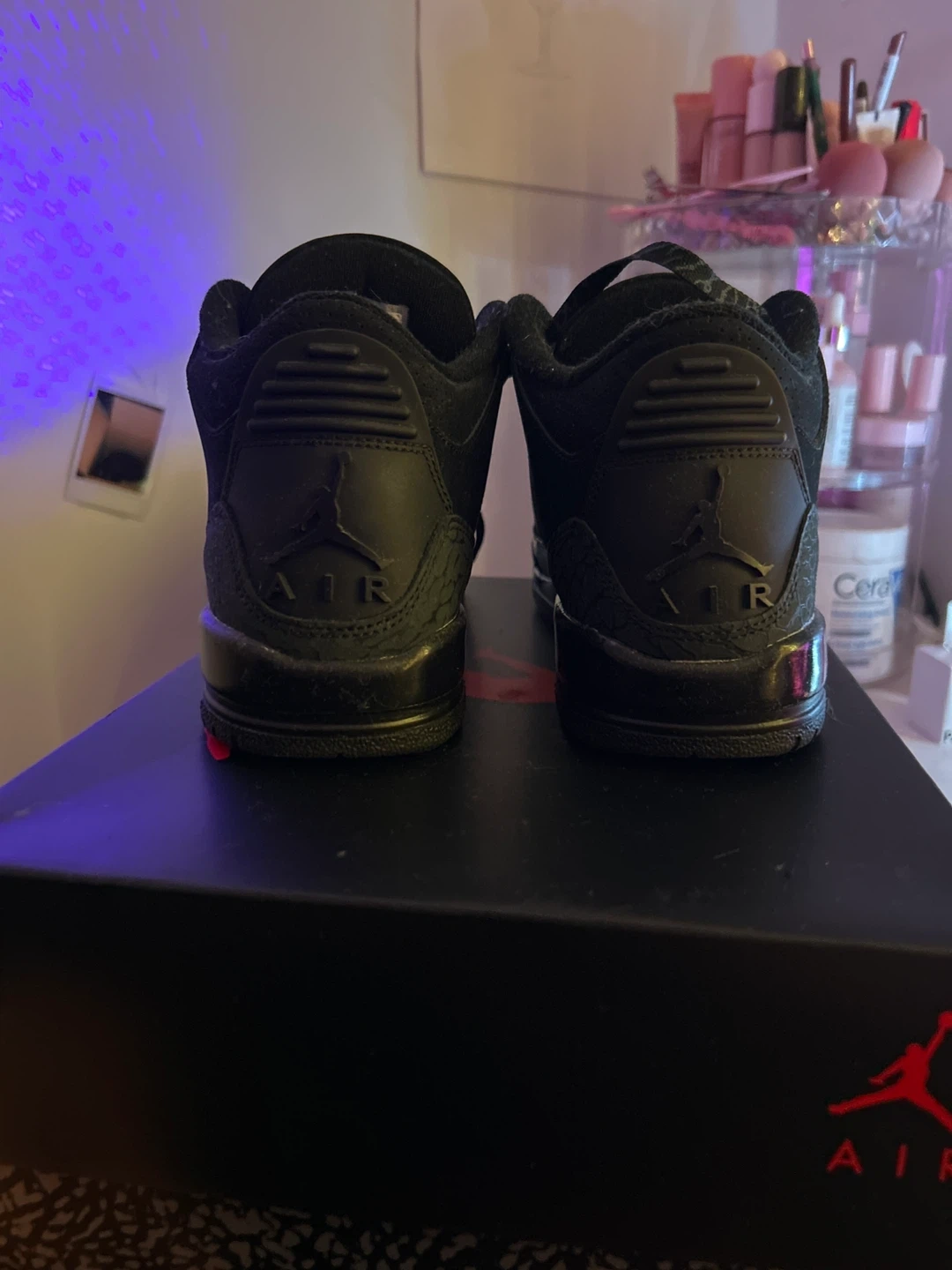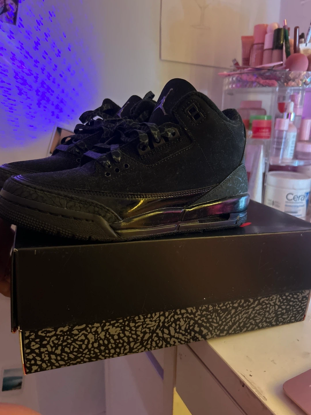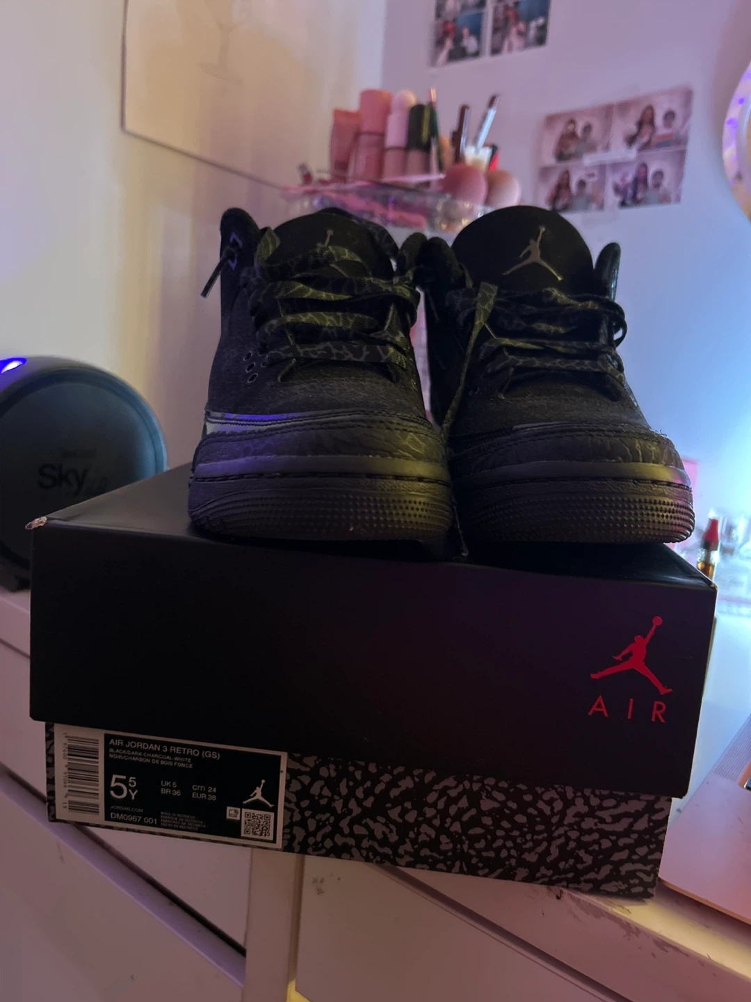 Selling a pair of Air Jordan 3 Retro (GS) in black. These are a youth size 5.5. Comes with the box