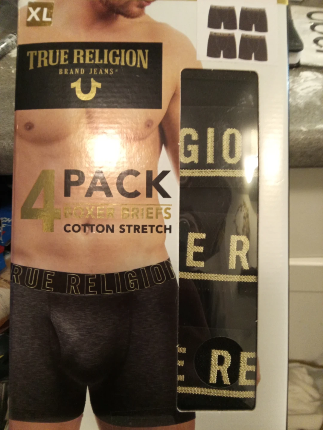 Selling a brand new 4-pack of True Religion boxer briefs! They're size XL and made with cotton stretch for a comfy fit