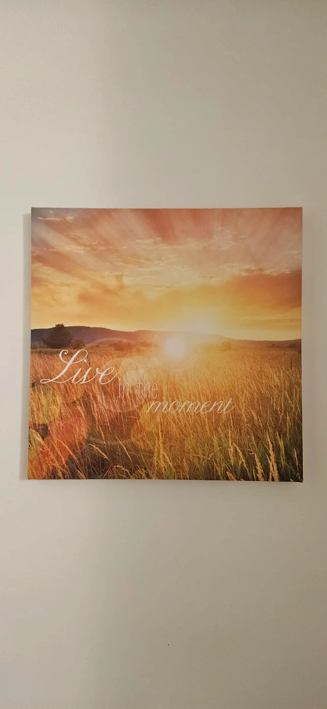 Selling a canvas wall art piece featuring a beautiful sunset and field scene! It measures approximately 18x18 inches. PU only at Coppermsith/Ironwood Plaza, Richmond BC.