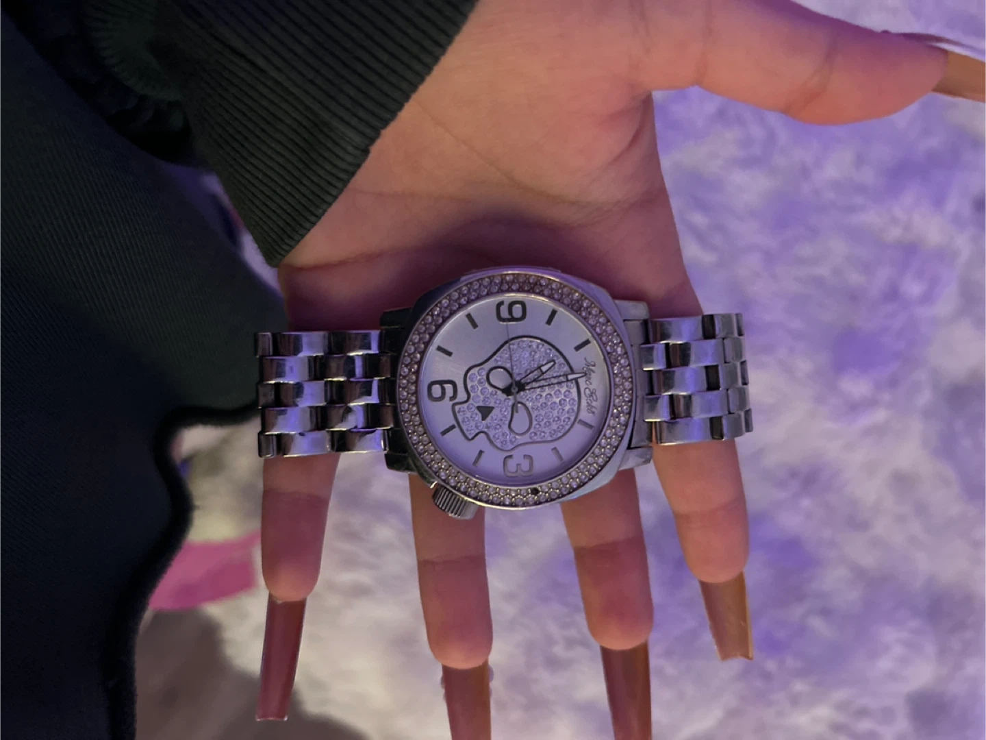 Selling a Marc Ecko watch in silver! It has a unique design on the face. It's in good condition and ready for a new owner
