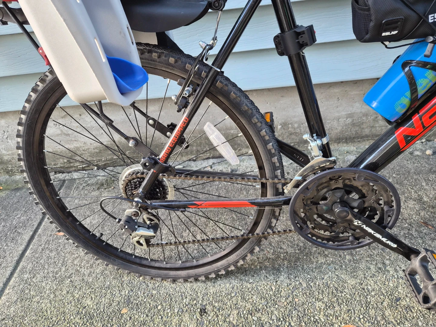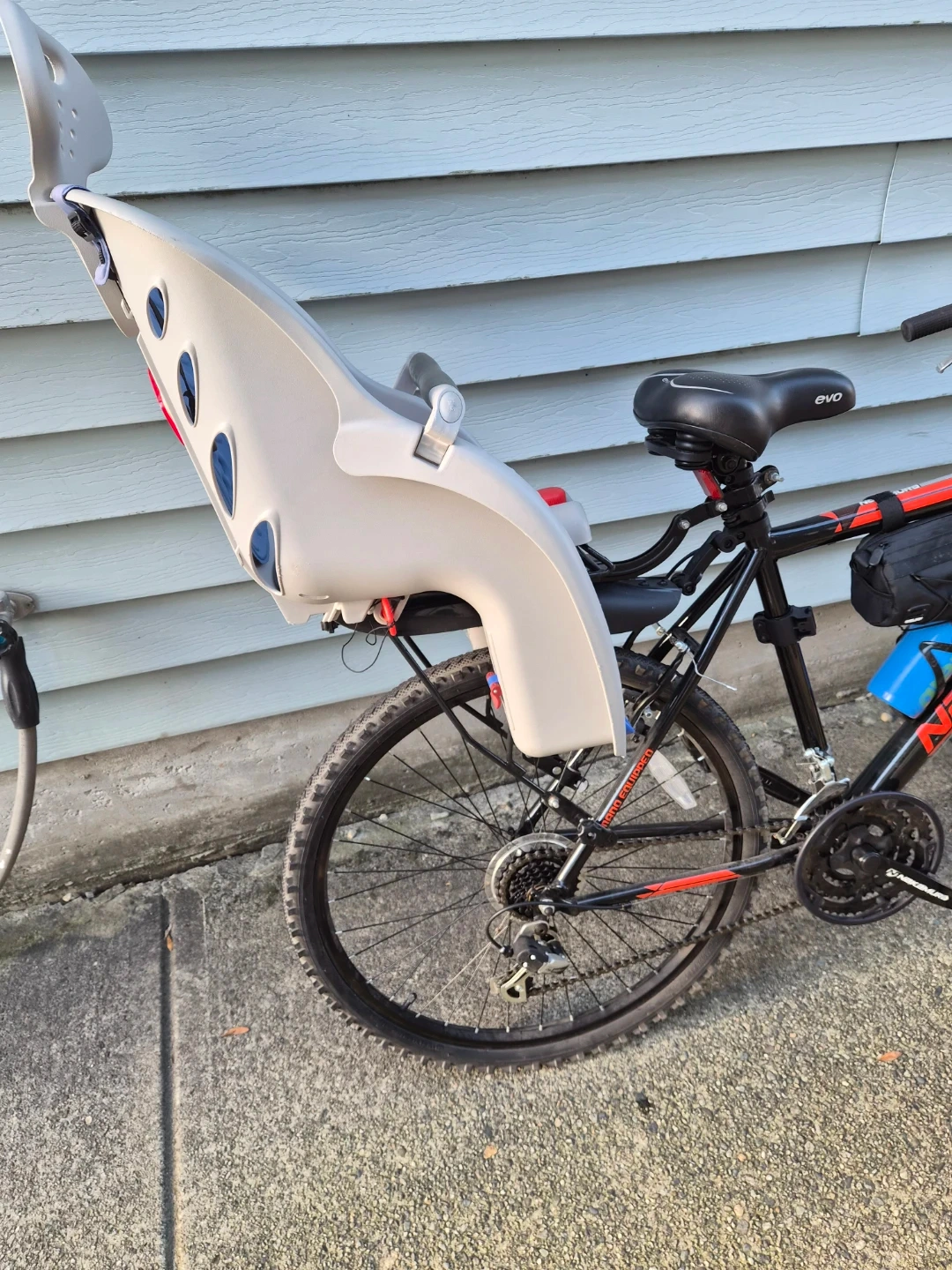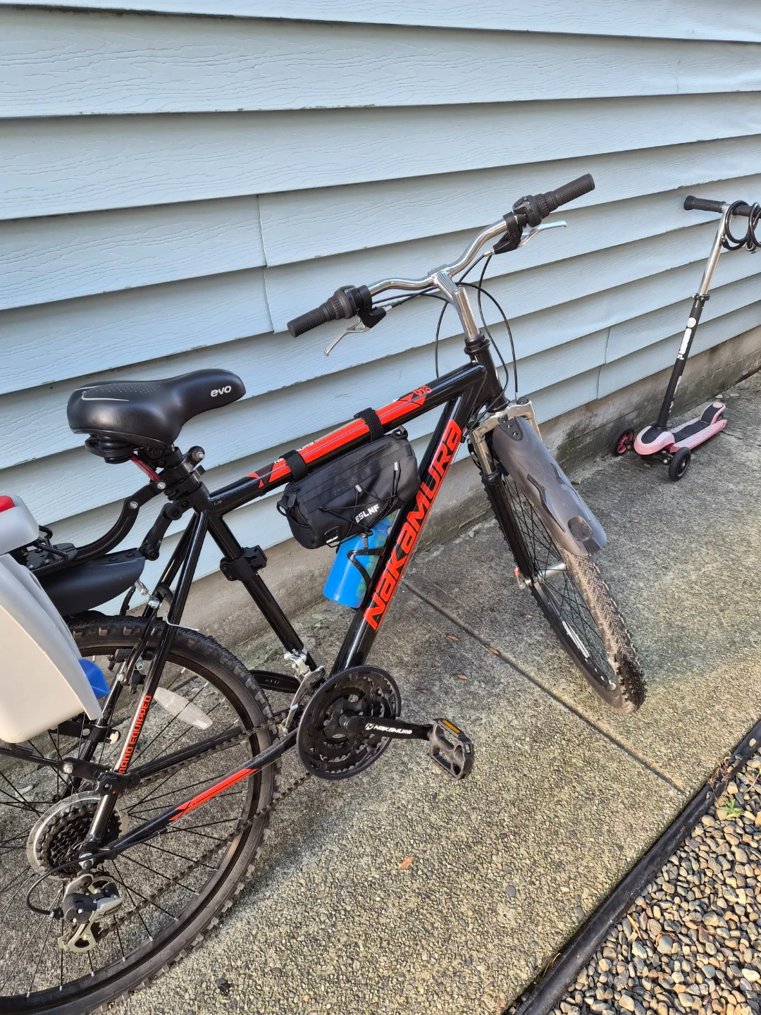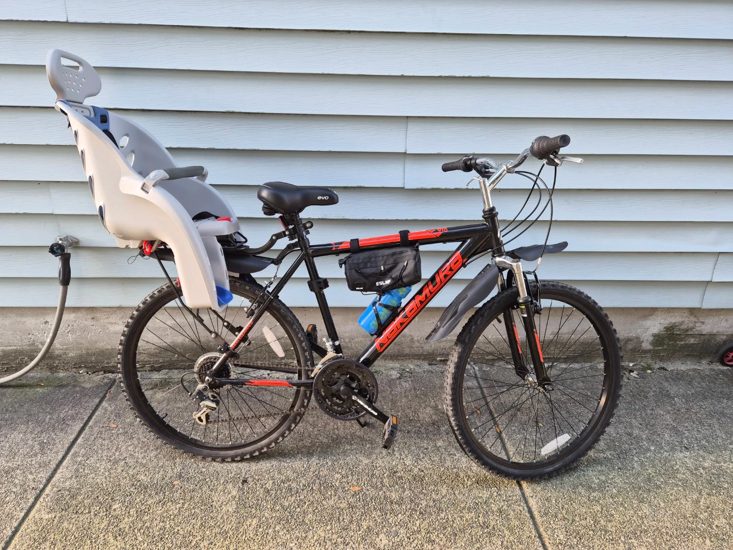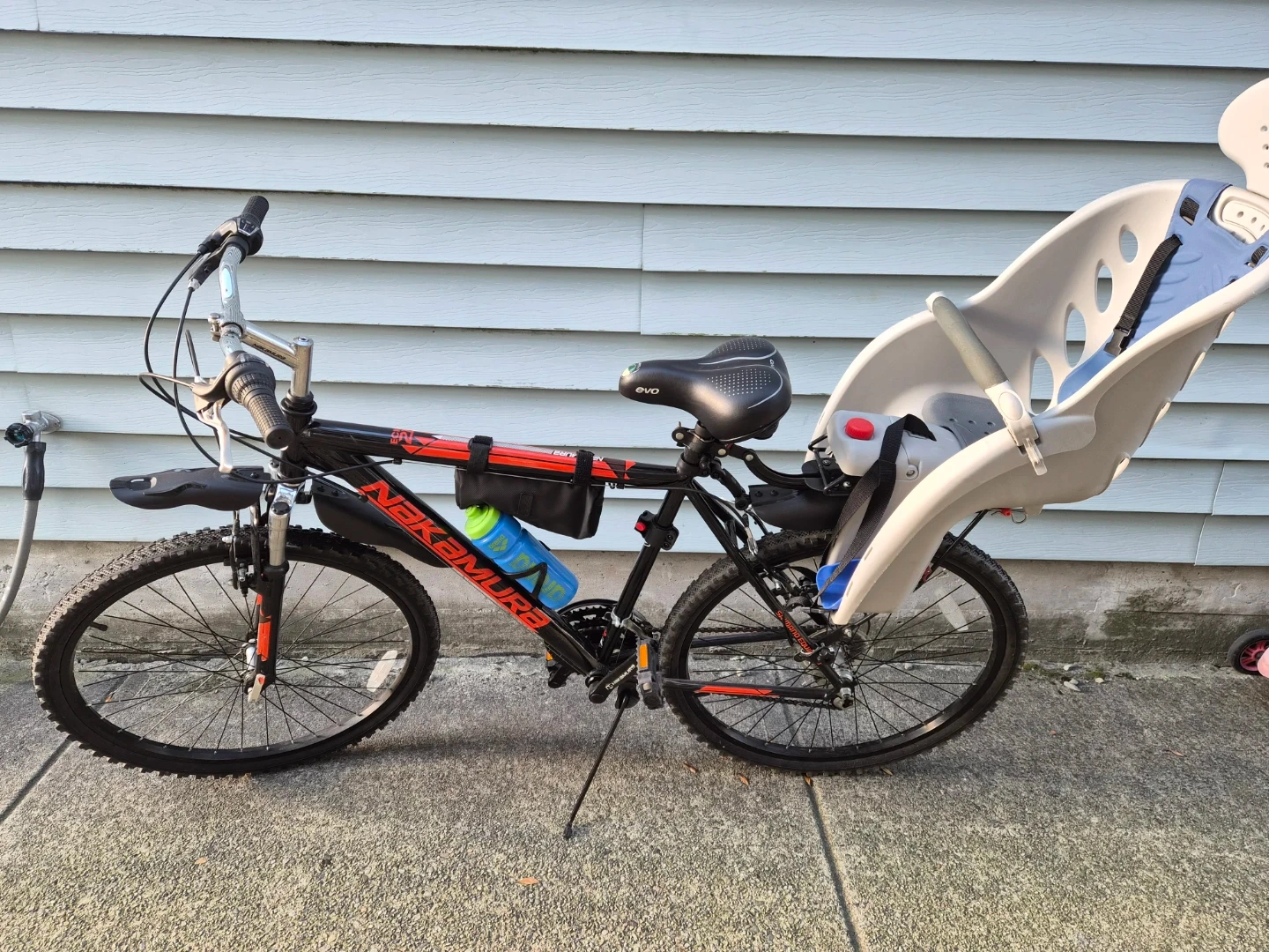 Selling a Nakamura bike that's ready for family adventures! It comes with an EVO child seat already installed, so you can easily take your little one along for the ride. The bike is in good condition and has been well-maintained. Perfect for enjoying the outdoors with your family!
