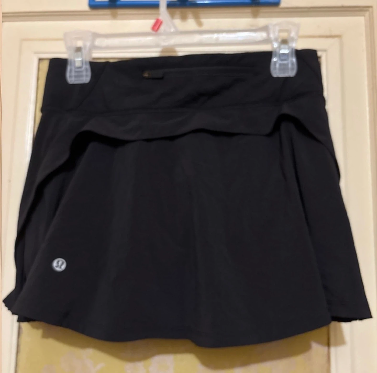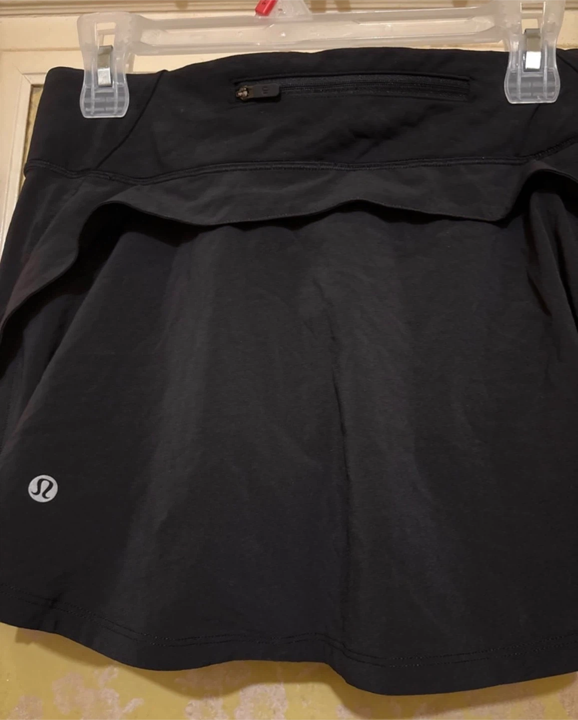 Get ready to ace your workout in this gently used Lululemon athletic skirt, designed for both performance and style. Featuring a built-in shorts for comfort and coverage, as well as a back zip pocket for your essentials, this skirt is as functional as it is fashionable.