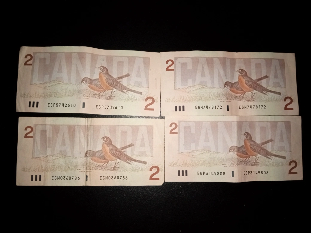 Four Canadian $2 Bills (1986)