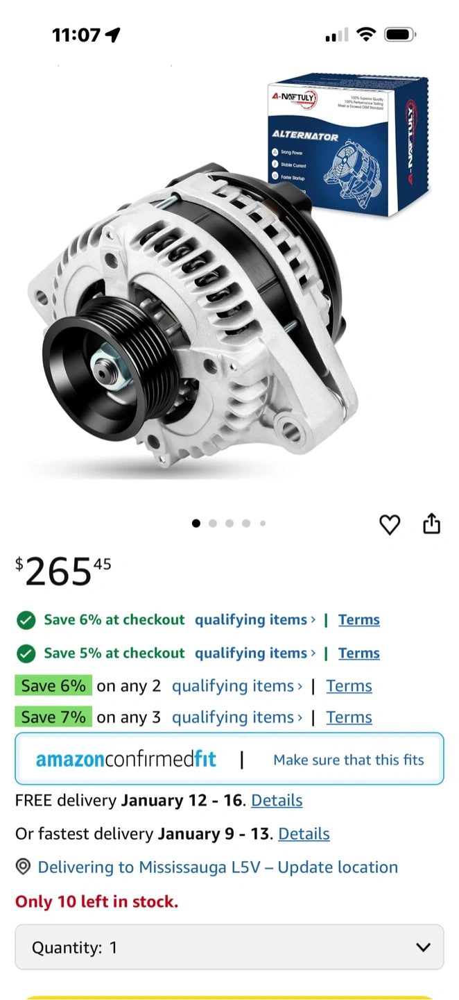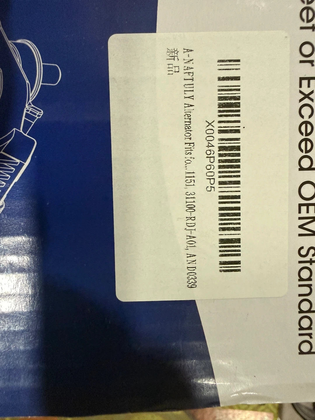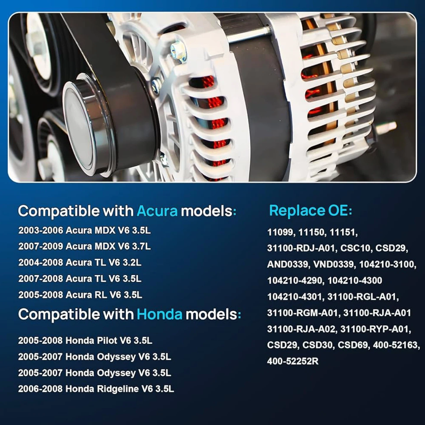 Selling a NAFTULY alternator compatible with various Acura and Honda models.