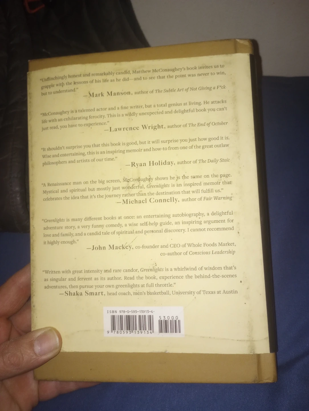 Selling a used copy of Greenlights by Matthew McConaughey. The book is in good condition. I bought this for $20.98