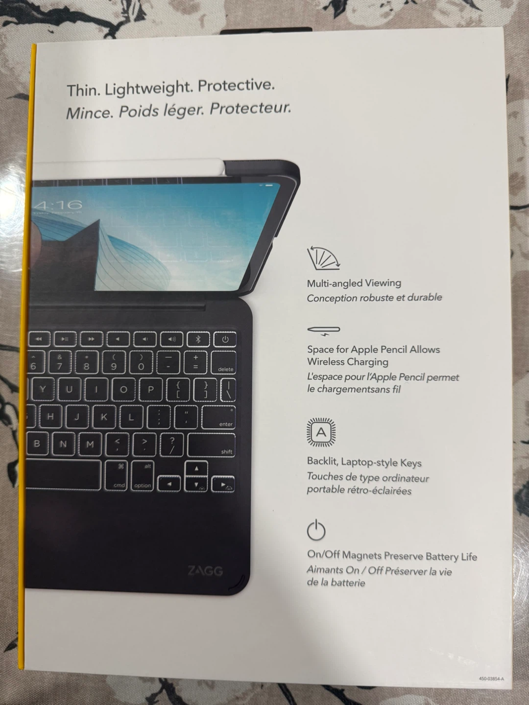 Selling a ZAGG Folio wireless keyboard and case for the 11-inch iPad Pro. It's a lightweight and portable folio keyboard that fits easily in your bag so you can stay productive on-the-go! It has multi-angled viewing, space for an Apple Pencil, backlit laptop-style keys and on/off magnets to preserve battery life. Protective case included!