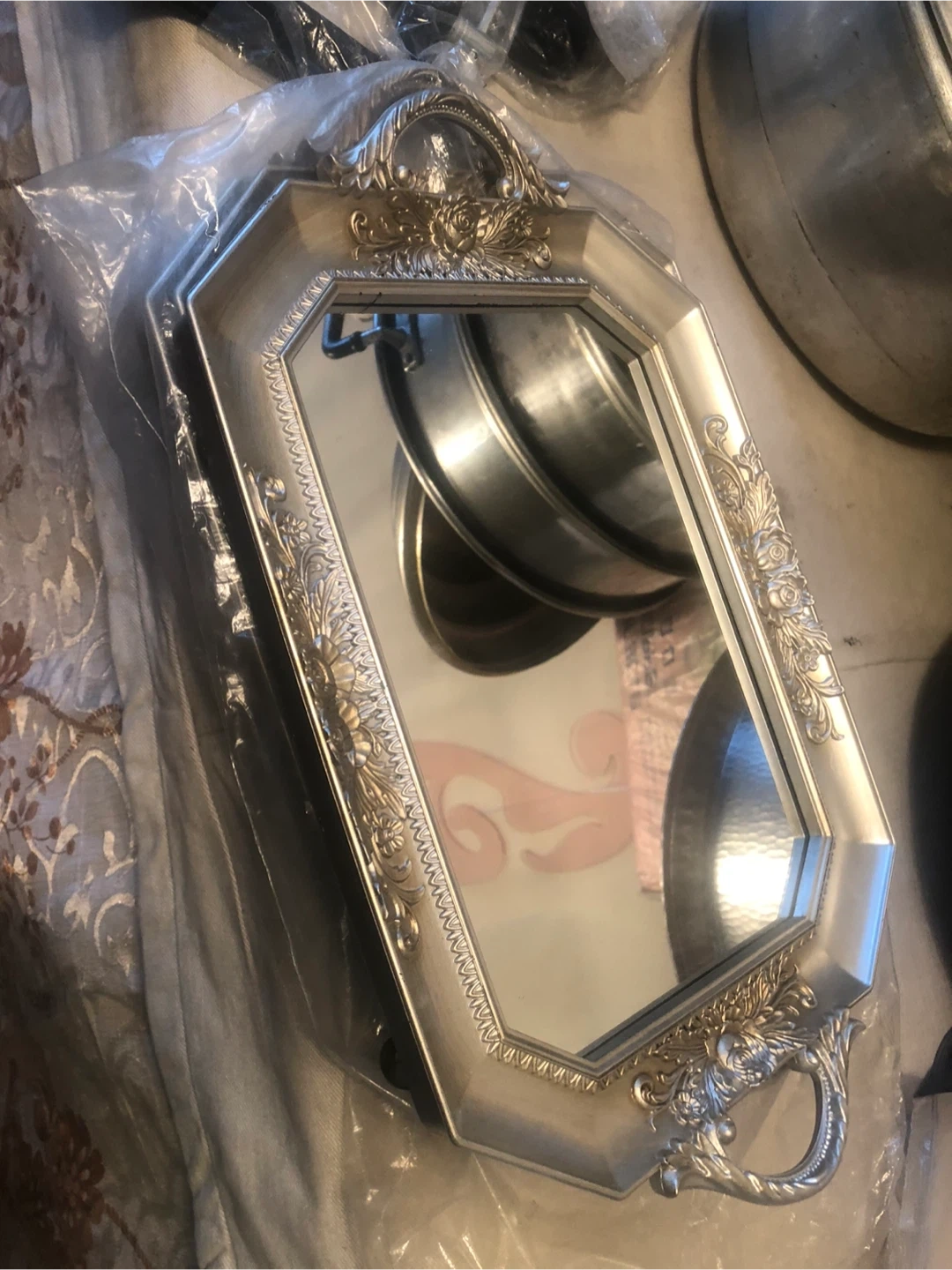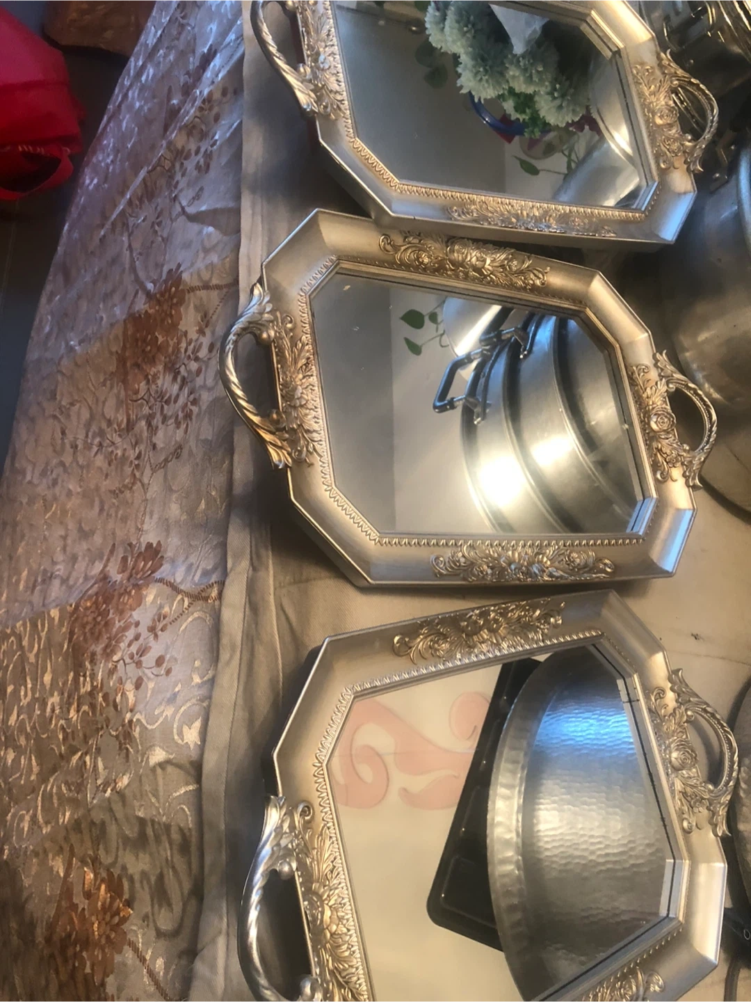 Selling a new 3-piece mirror set! These decorative mirrors are in excellent condition and ready to add a touch of elegance to your home. They have a beautiful silver finish and ornate detailing.