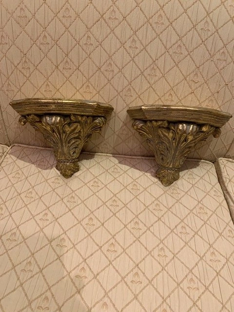 2 Vintage Gold Leaf Hollywood Regency Wall Scones