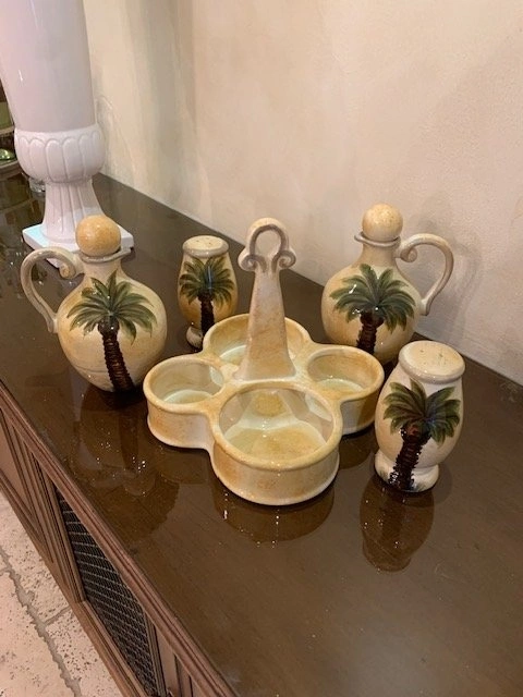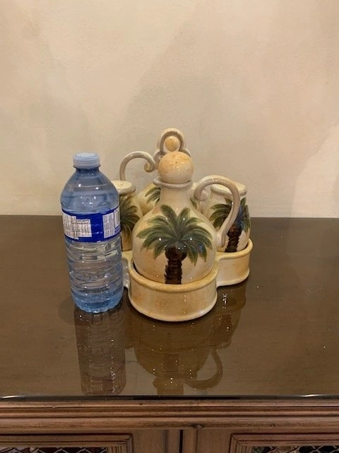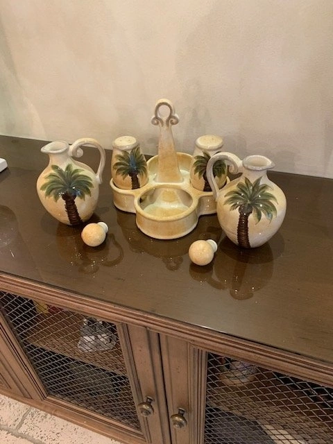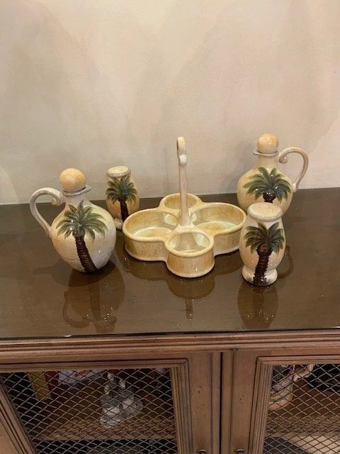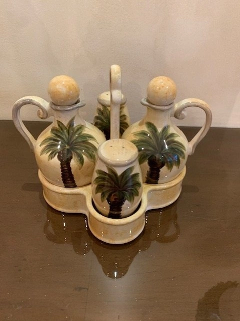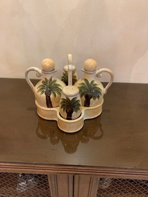 Oil , Vinegar with Lids , Salt , Pepper and Caddy