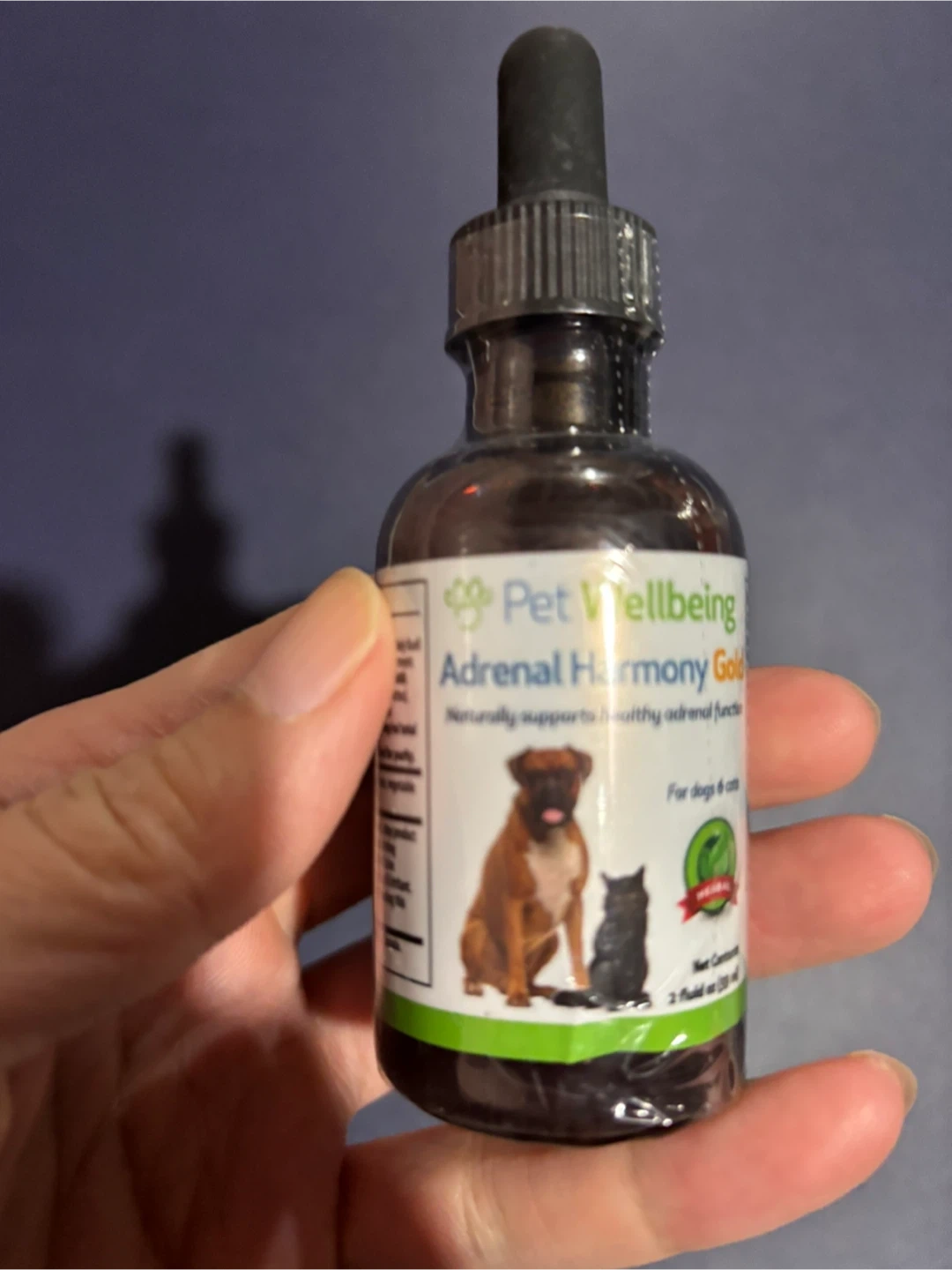 Selling a bottle of Pet Wellbeing Adrenal Harmony Gold for dogs and cats. This is a natural supplement to support healthy adrenal function. Expiry Date: 2028