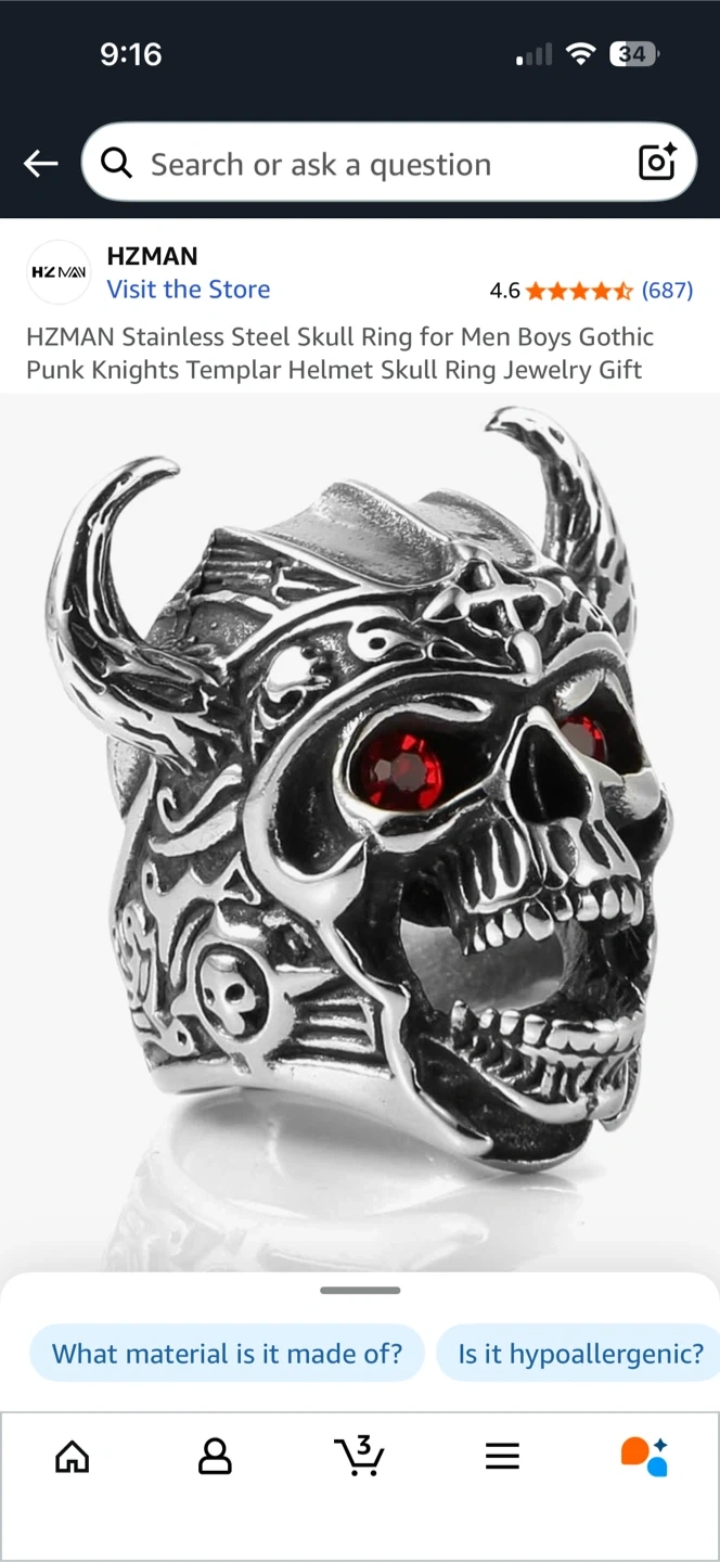 Selling a brand new HZMAN stainless steel skull ring. It's a size 10 and still in its original packaging!
