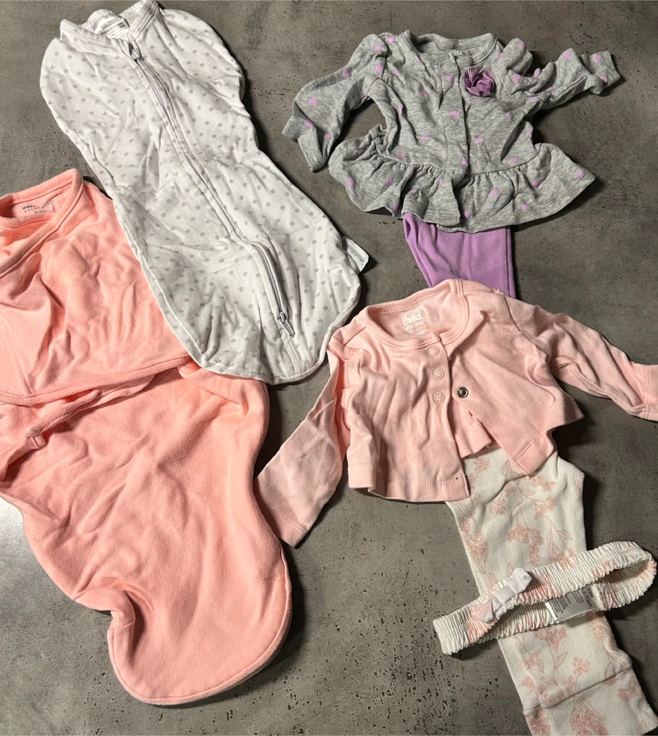 Selling a mixed bundle of baby clothing. Includes onesies, sleepers, pants, and more! Mostly 0-3 months, but a few newborn pieces.