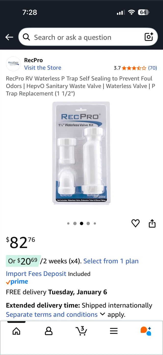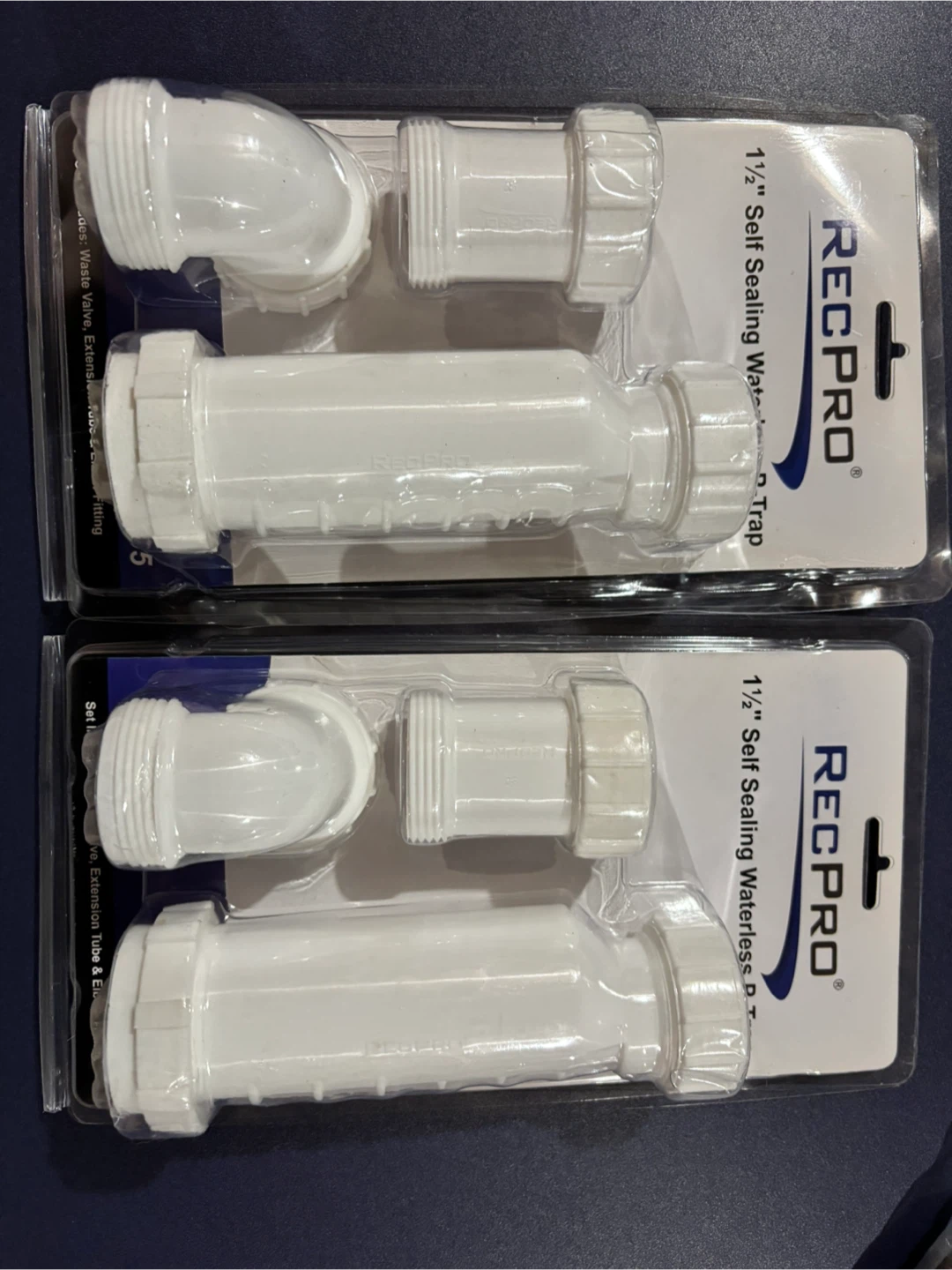 I have a brand new RecPro 1 1/2" Self Sealing Waterless P-Trap for sale! It's designed to prevent foul odours and is a great replacement for your RV's waterless valve or P-trap. Retails for $82.76. Selling both for the price of 1!