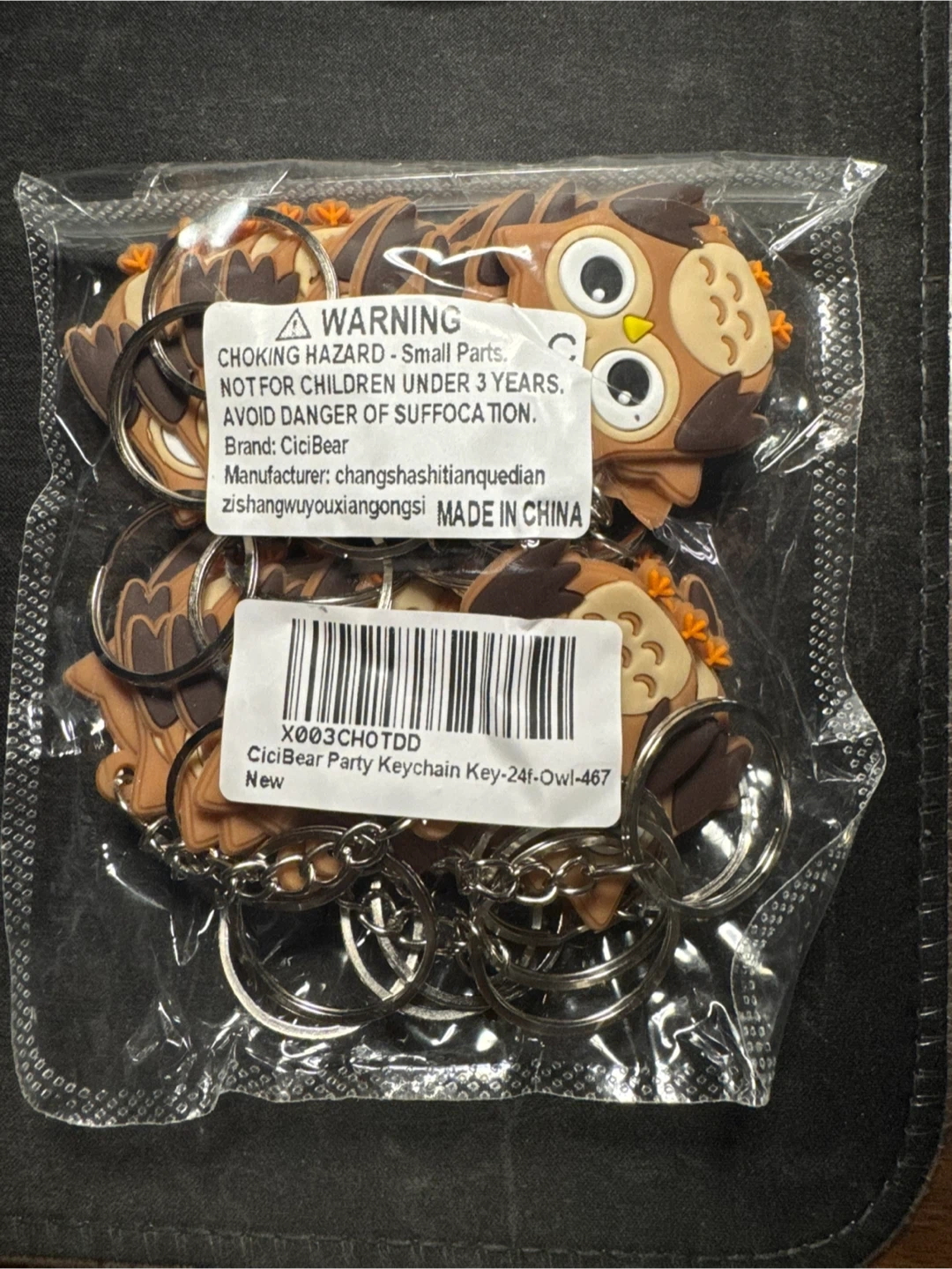 Selling a pack of CiciBear Owl Party Keychains! They are brand new and still in the original packaging. Please note that these keychains contain small parts and are not suitable for children under 3 years old, due to choking hazard