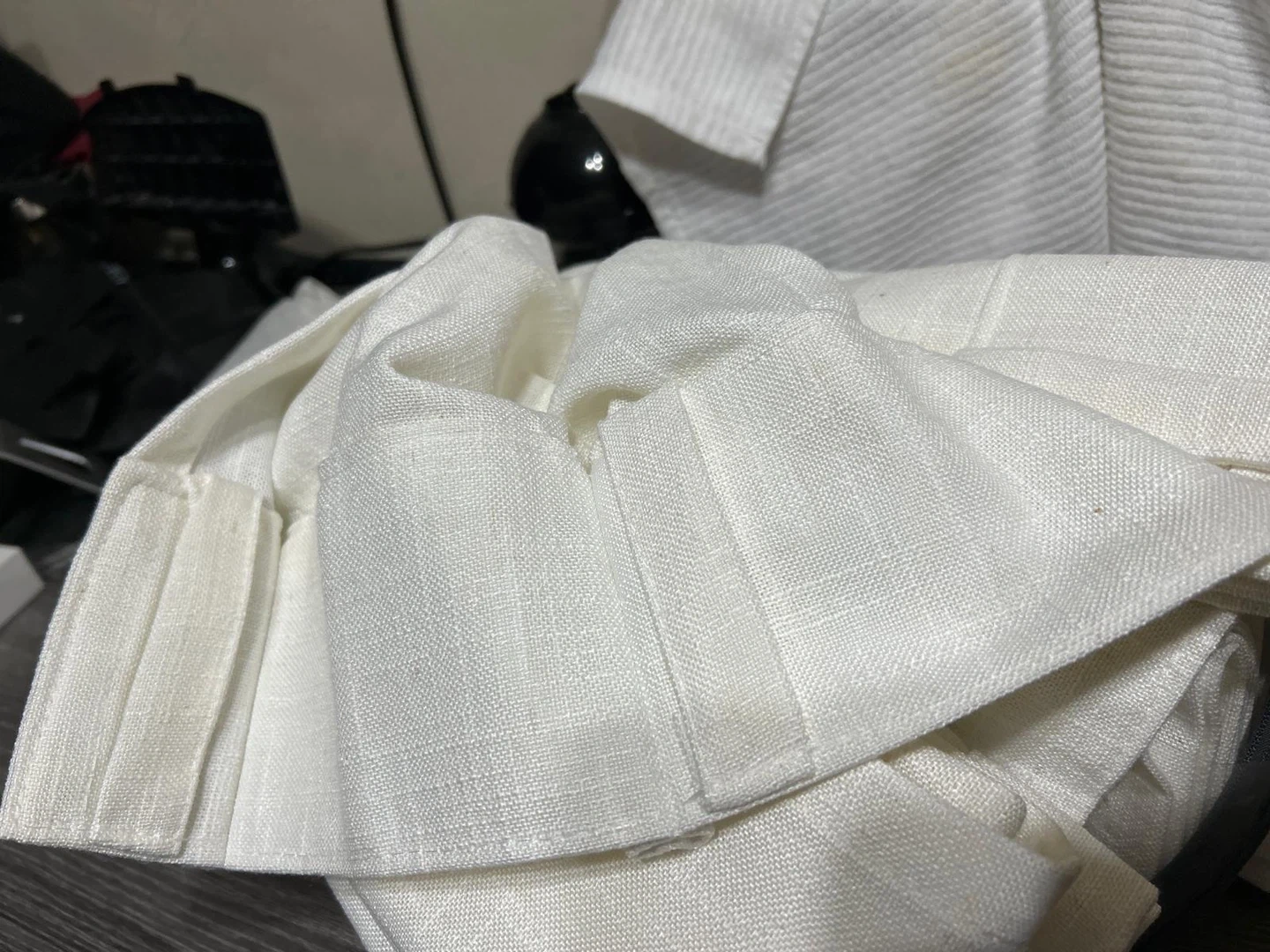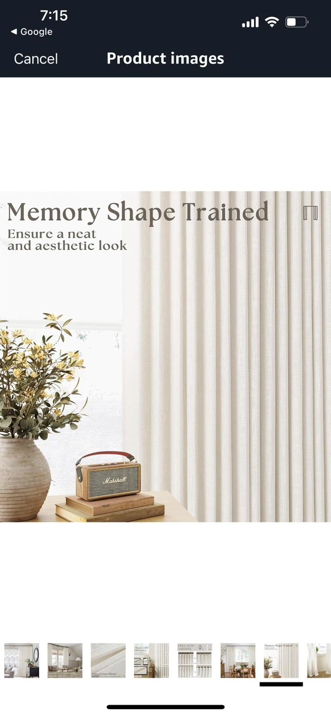 These are brand new TwoDrapes pinch pleated linen curtains, memory shape trained for a neat and aesthetic look. They are made from a natural linen blend with a 380 GSM fabric that features a rich linen texture. Includes the curtain clips.
