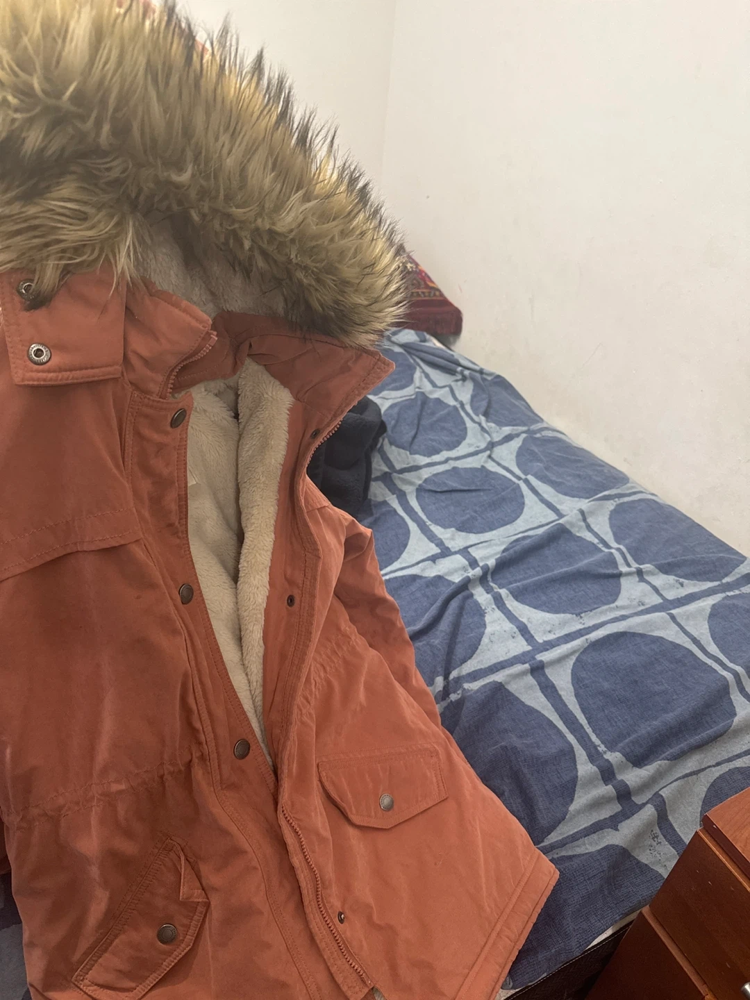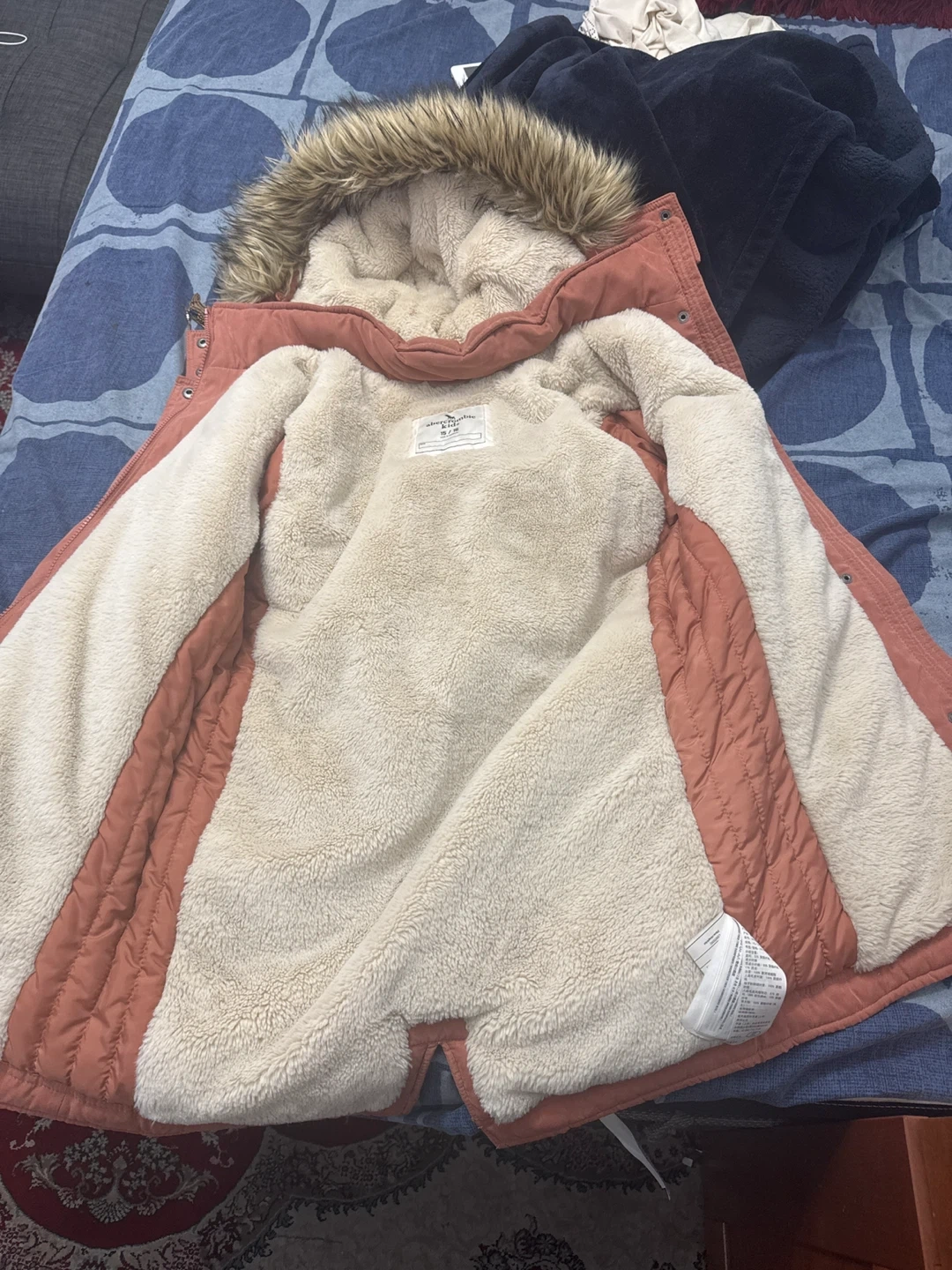 Cozy Abercrombie Kids winter parka in size 15/16! It's a lovely orange colour with a faux fur-trimmed hood and a soft, warm lining. Perfect for staying snug during those chilly Canadian winters