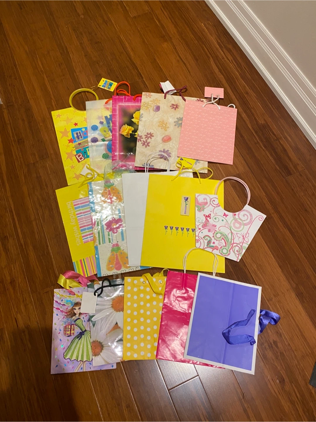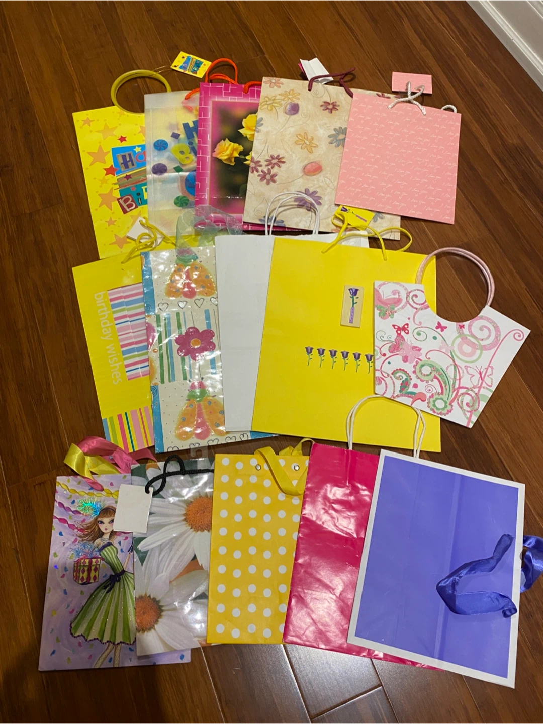 A collection of 15 assorted gift bags, perfect for birthdays or any special occasion! There are various sizes and designs, so you'll find something for every gift