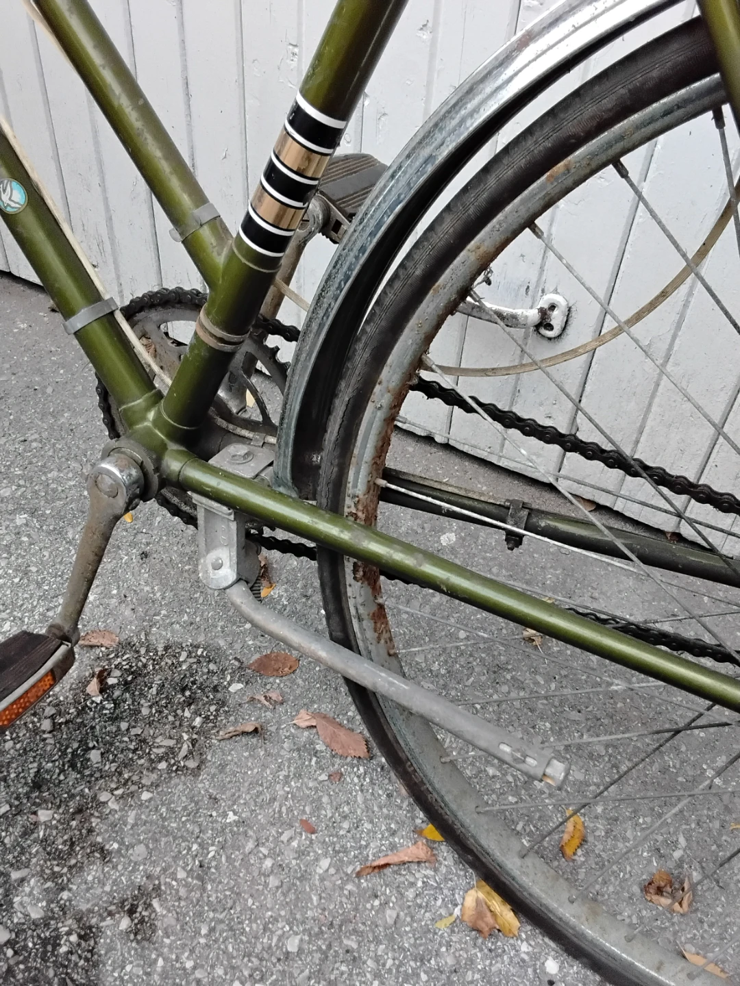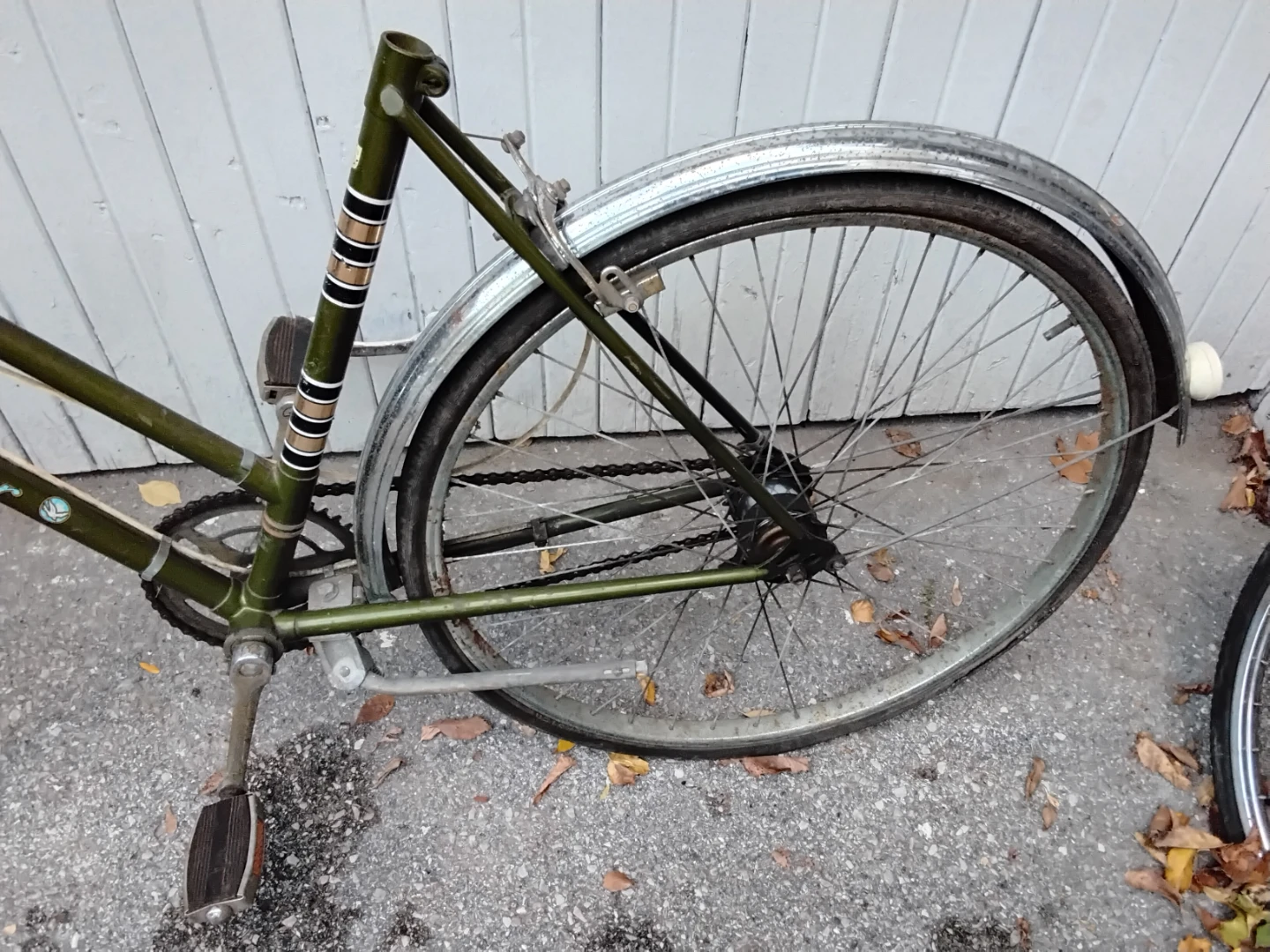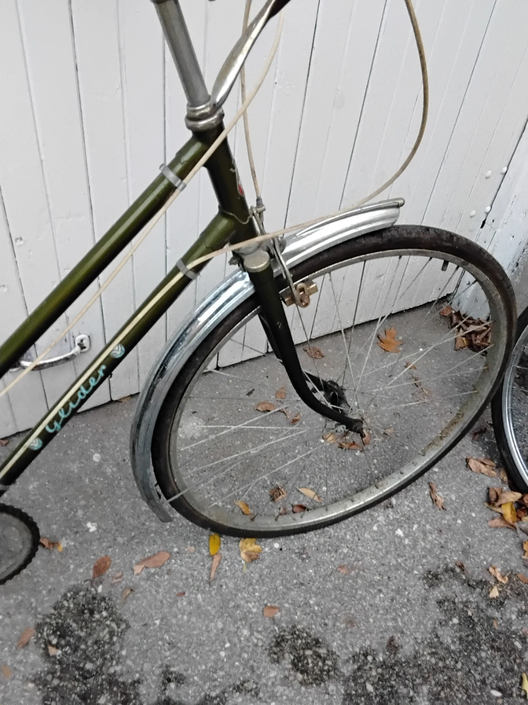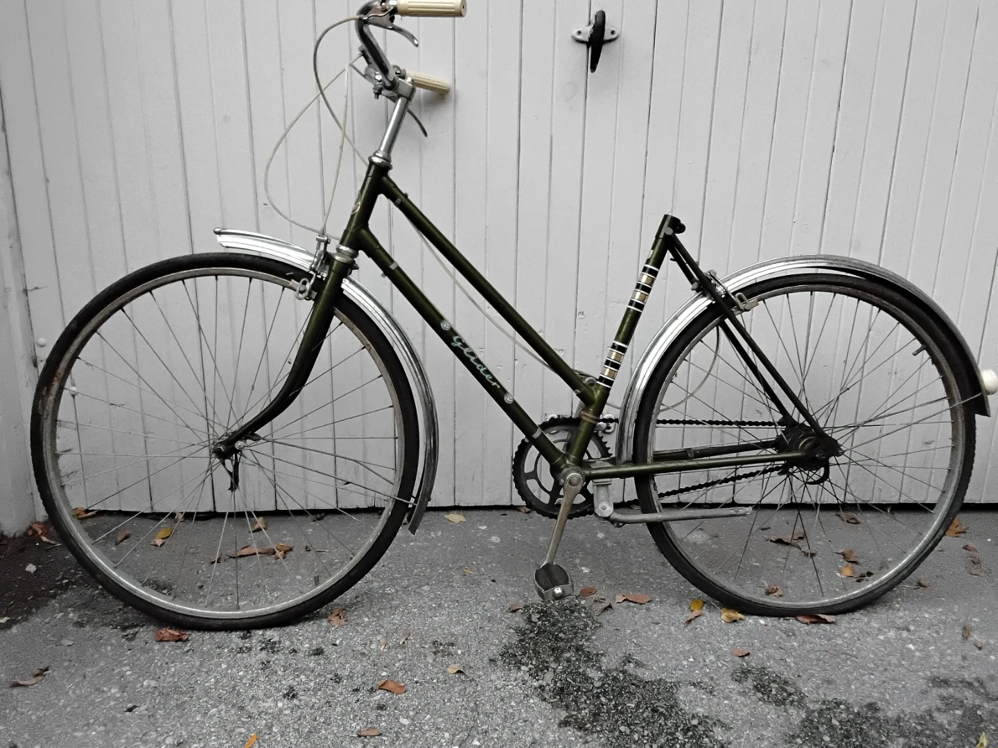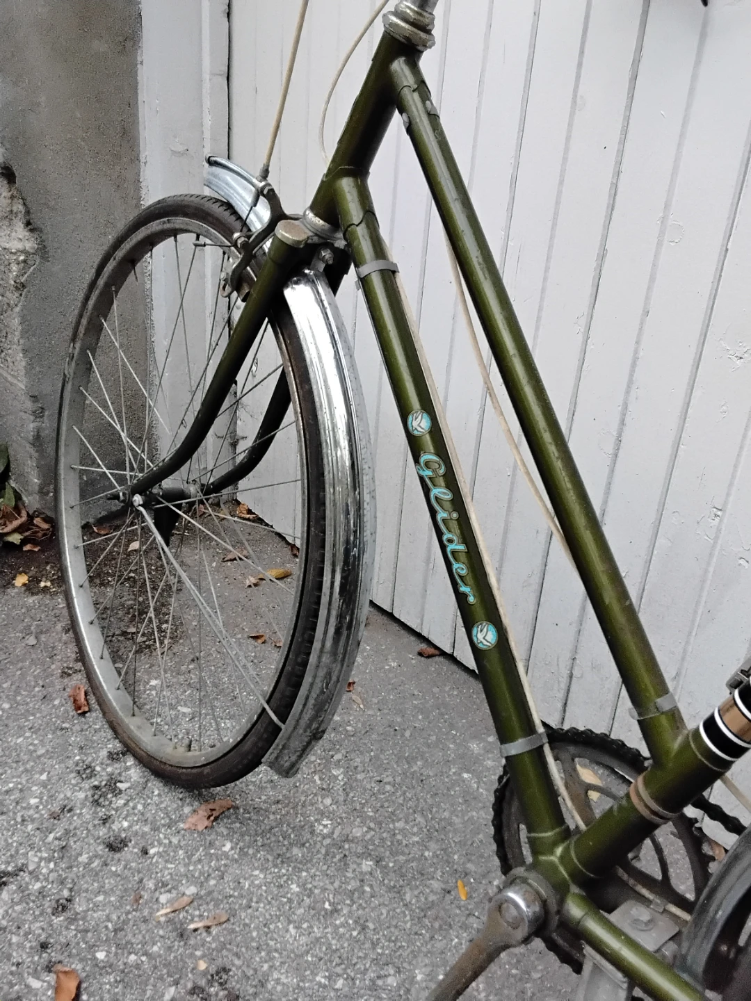 οΈ This is a vintage Tru-line Eaton's Glider bicycle.π₯Made in England. The bike was sold through the Canadian department store chain Eaton's and was manufactured by Raleigh. It is a 3-speed bike, and many of the original parts, including the Sturmey Archer hub, are still present. The specific model in the image is a women's version technically. The bicycle in the image has a step-through frame, which is a design traditionally associated with women's bicycles. However, anyone can ride a bicycle with a step-through frame, and they are also popular for their ease of mounting and dismounting.