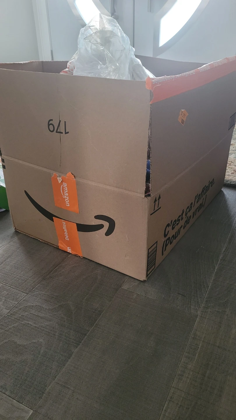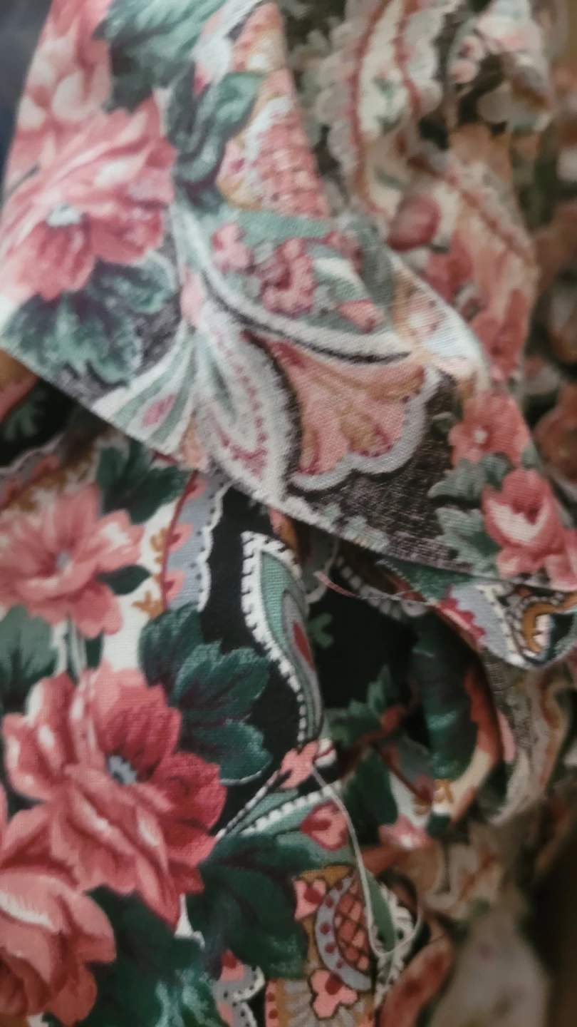 Box filled with various fabric scraps. There are different patterns and colours mixed in, perfect for small sewing projects or crafts! It's a great assortment for anyone looking to add to their fabric collection