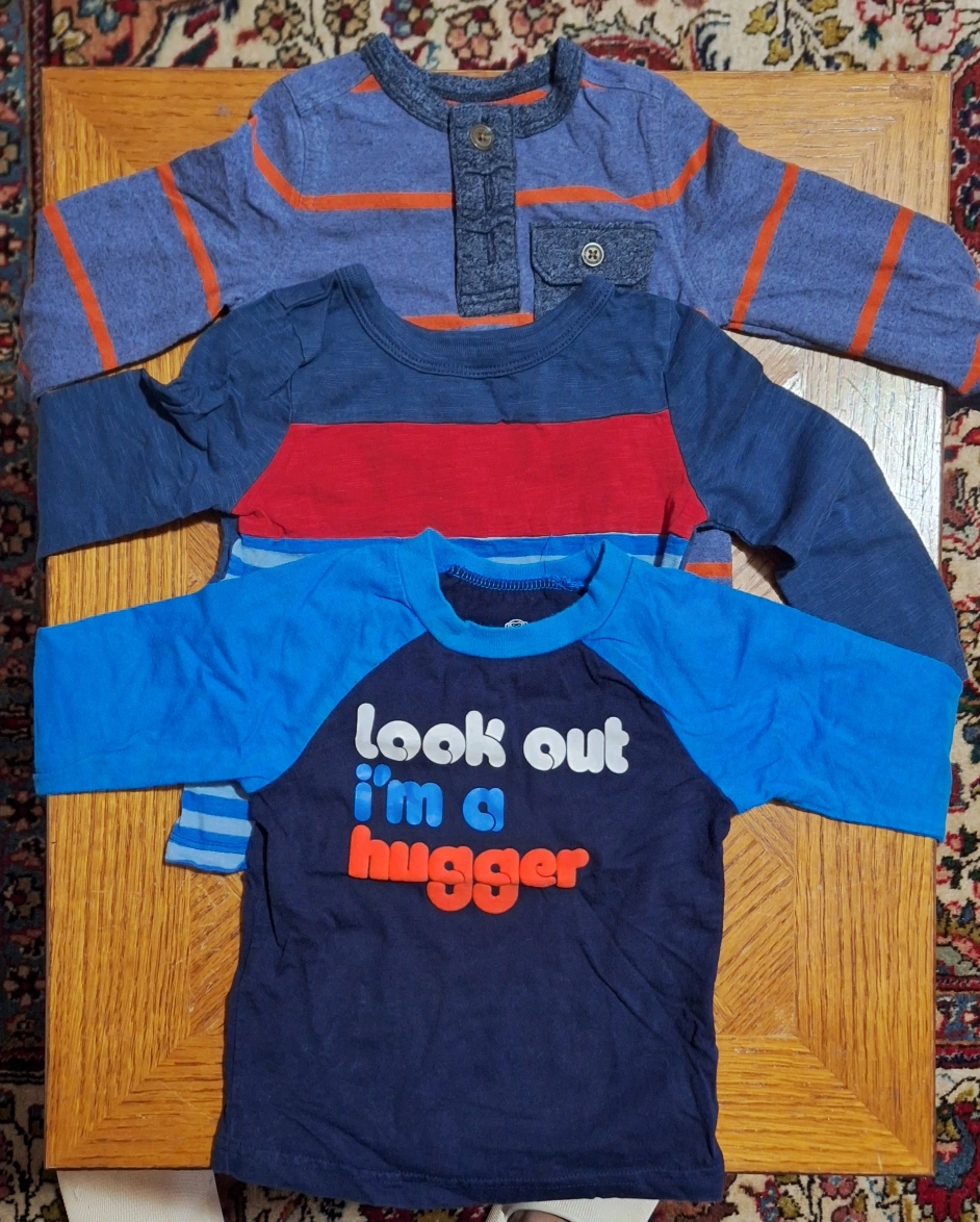 Here are three cute long sleeve shirts for a baby or toddler! They are in great condition and ready for a new little one to wear