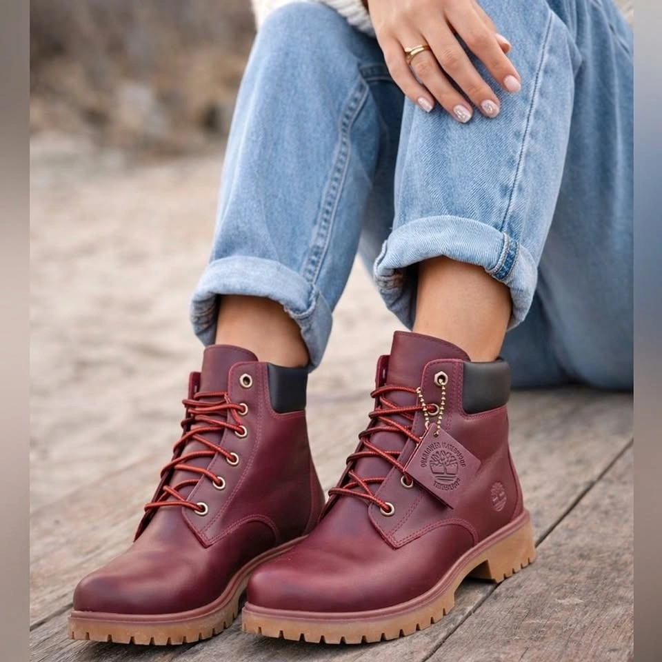 Rich burgundy leather with classic Timberland styling and durable lug sole.