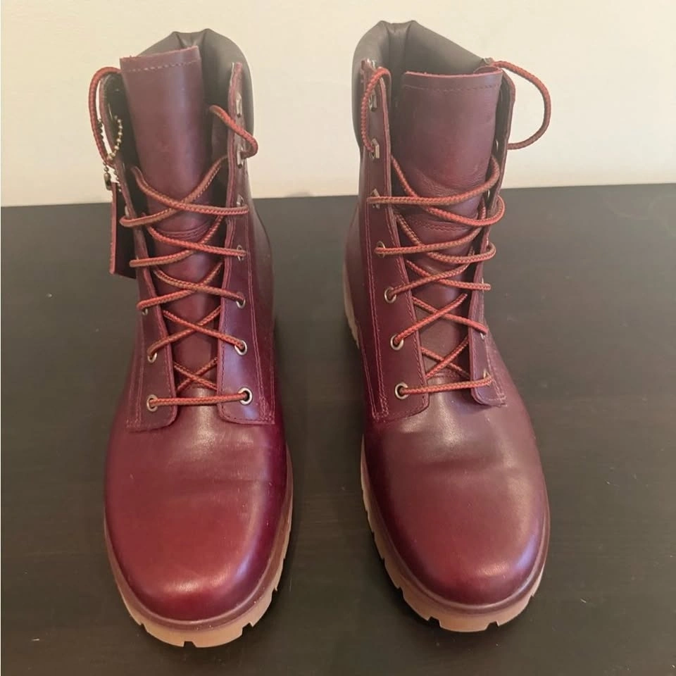 Rich burgundy leather with classic Timberland styling and durable lug sole.