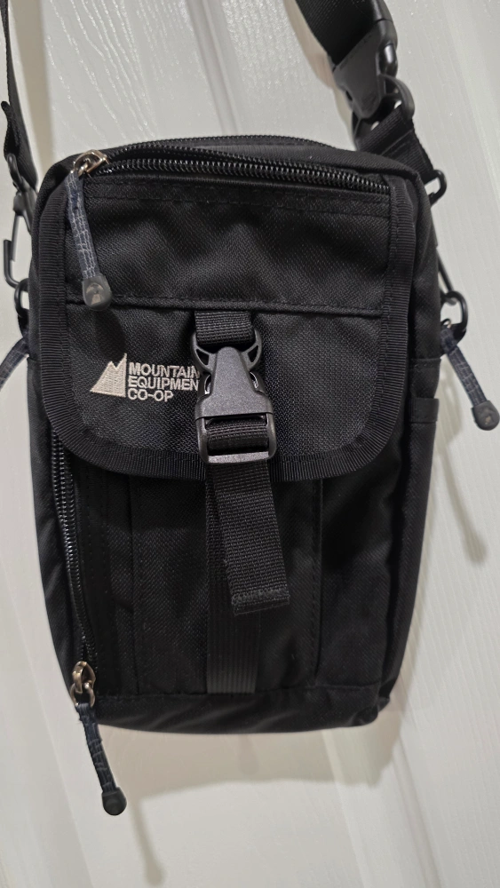 Check out this Mountain Equipment Co-op crossbody bag! It's a handy size for carrying your essentials. This black bag is in great condition and ready for your next adventure