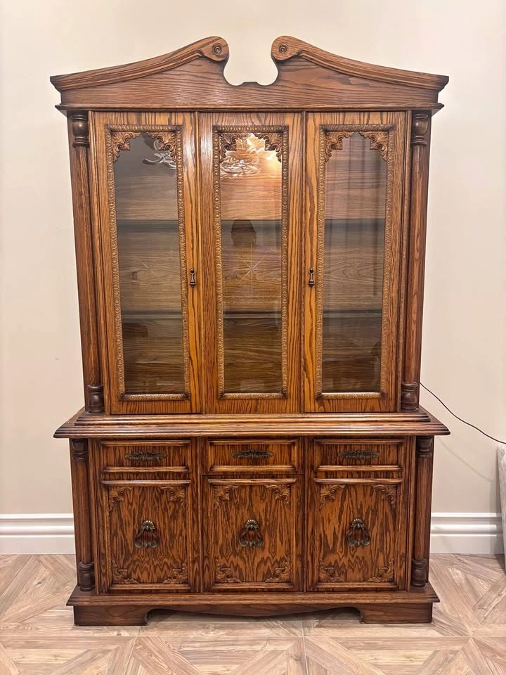 We’re selling our vintage solid wood buffet & hutch. It’s in good condition and excellent for those who are looking for a solidly built quality unit. We recently moved and it can’t fit in our new place which is why we’re selling it. You will not find this quality nowadays without paying $$$.