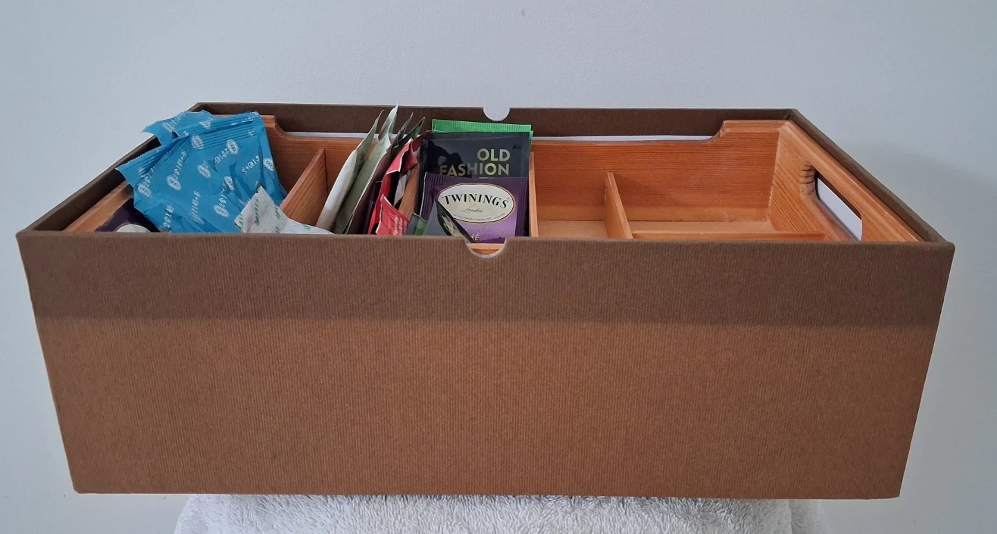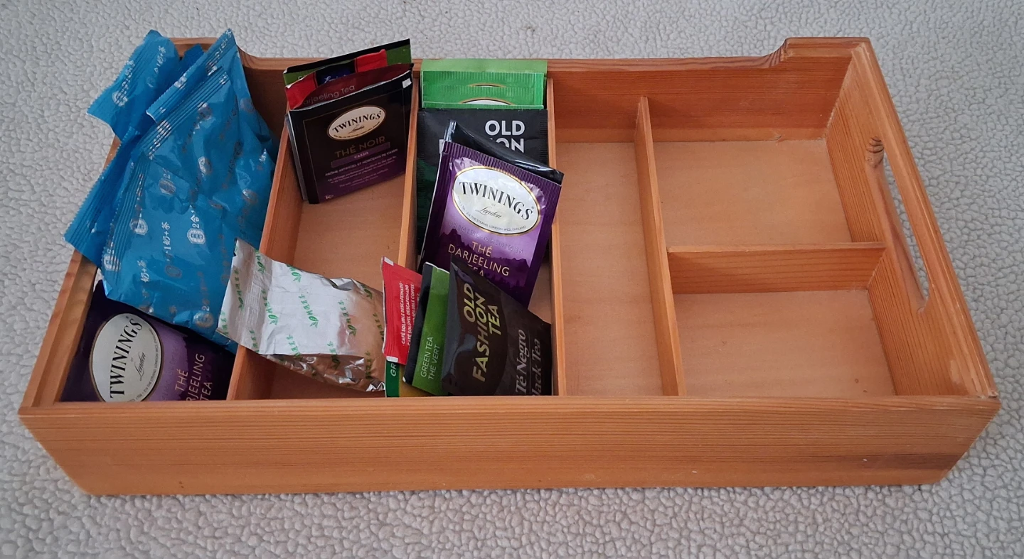 Selling a wooden tea box with a removable tray! It's in great shape and ready to organize your favourite tea bags. Perfect for keeping your tea collection tidy and accessible