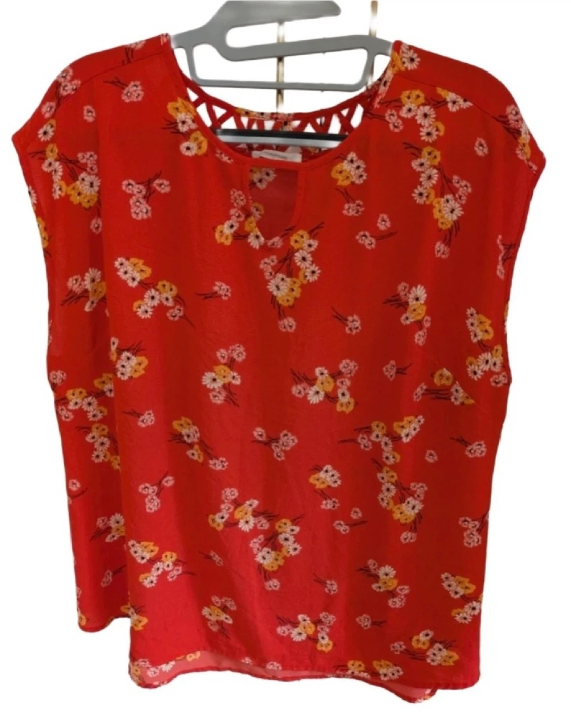 Brighten up your wardrobe with this cheerful red floral blouse from Maurices. Featuring a relaxed fit and soft fabric, it’s perfect for casual outings, weekend brunches, or layering under a jacket for a pop of color.