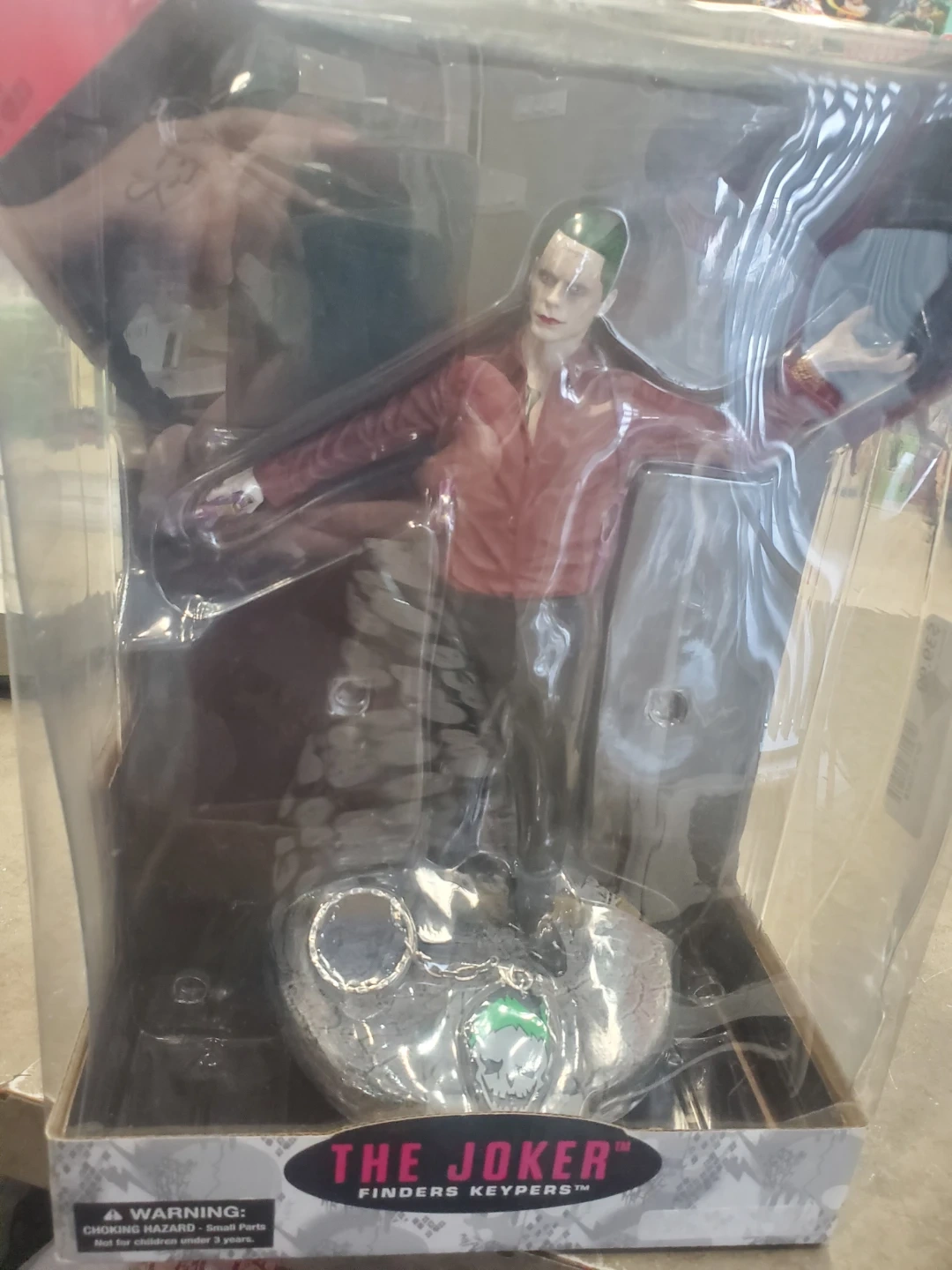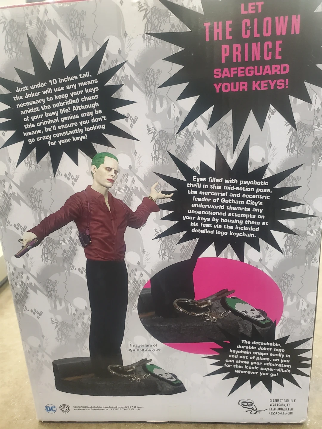 Selling The Joker Finders Keypers statue from Suicide Squad. The Joker will use any means necessary to keep your keys amidst the unbridled chaos of your busy life! He'll ensure you don't go crazy constantly looking for your keys! It stands just under 10 inches tall and features a detachable, durable metal logo keychain snaps easily in place, so you can show your admiration for this iconic super-villain wherever you go