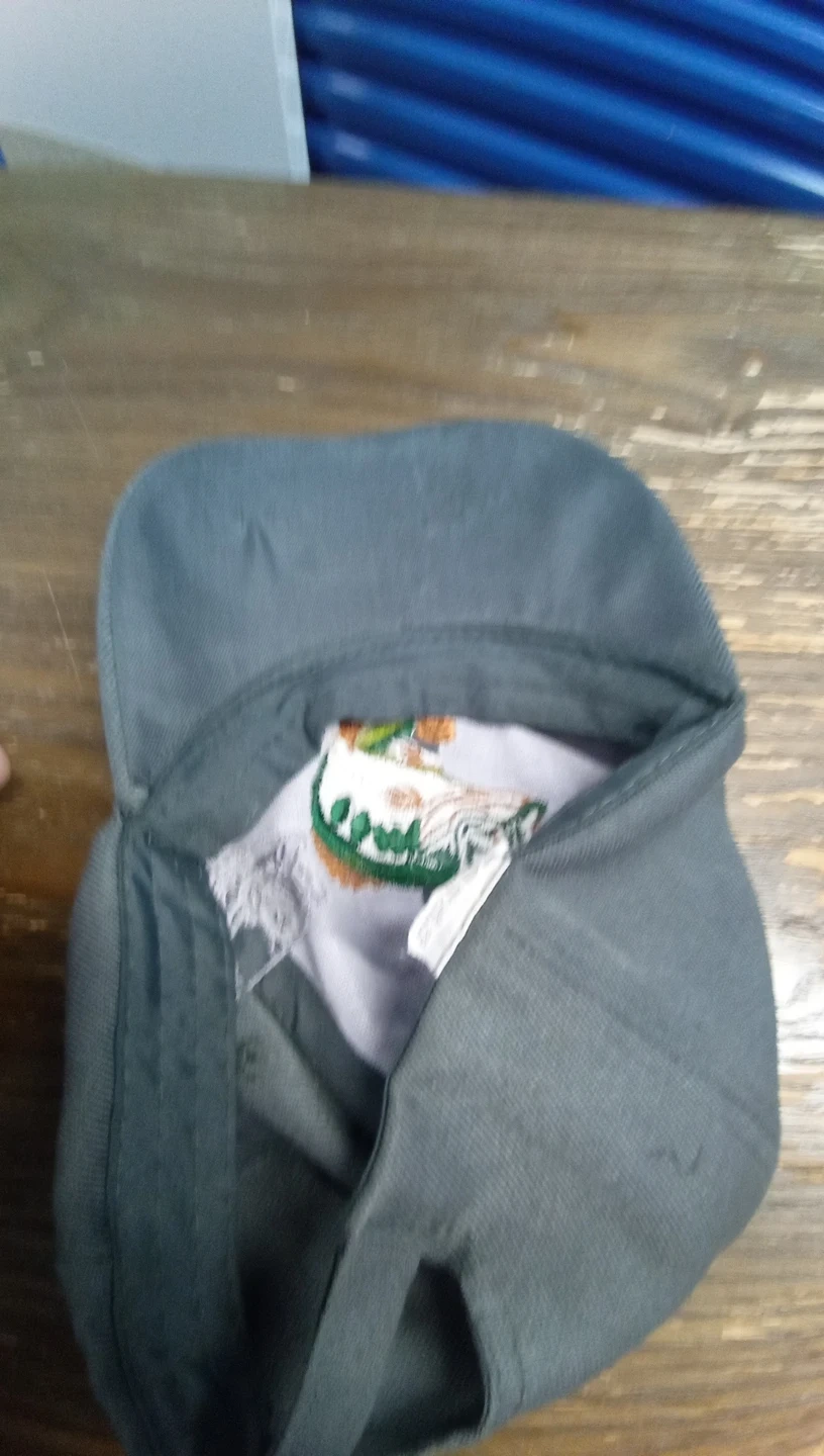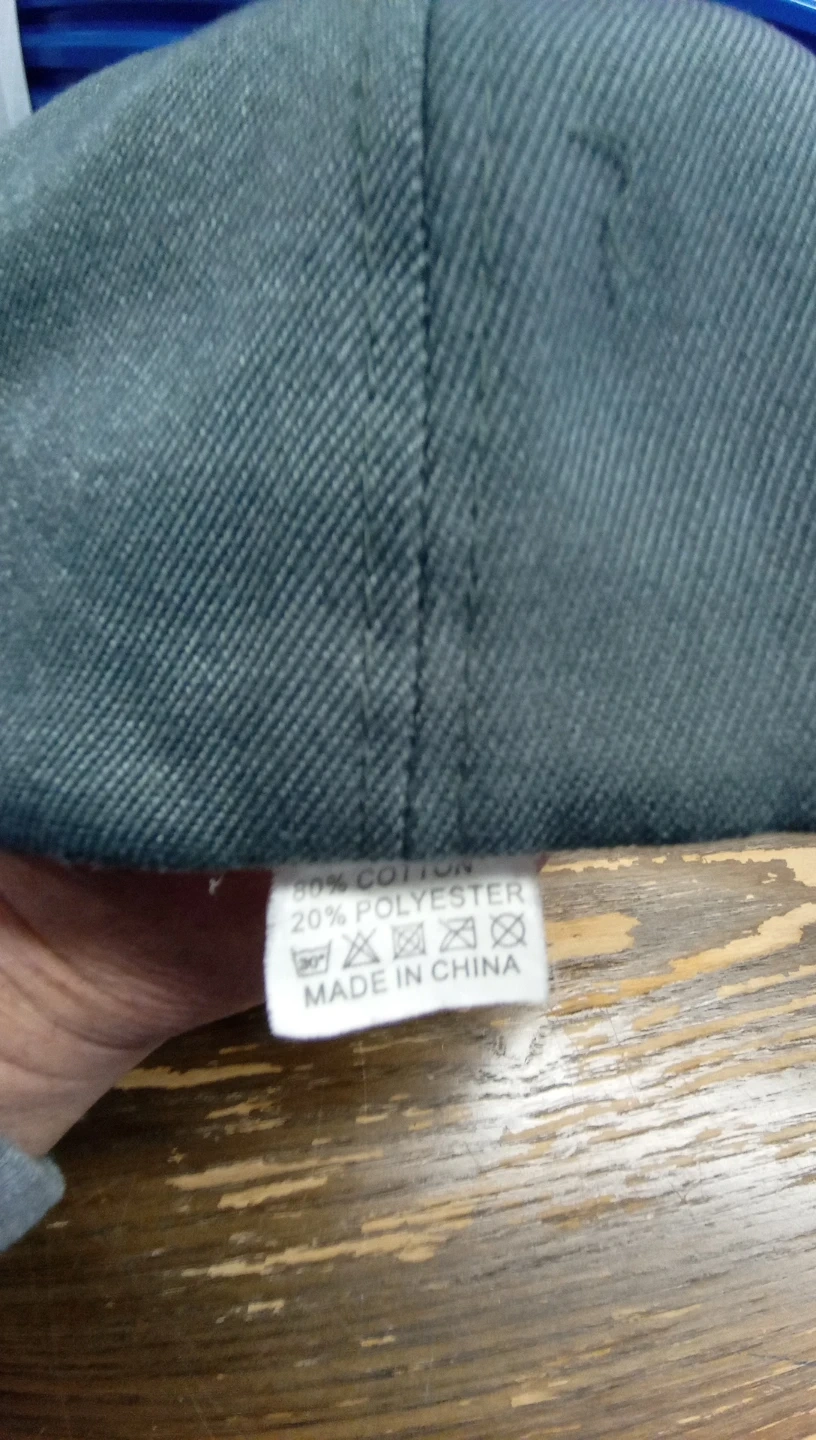 Selling a gray baseball cap. It features a fish embroidery design. The hat is made of 80% cotton and 20% polyester.