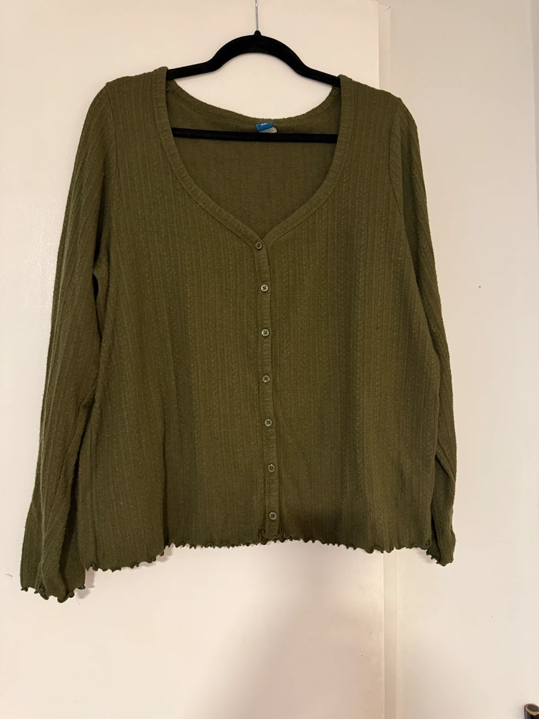 Buy & SellOld Navy Olive Green Cardigan - XXLOld Navy Olive Green Cardigan - XXL$15Selling an Old Navy cardigan in olive green. It's a size XXL and features a V-neck with button-down closure. Perfect for layering!ConditionGoodSizeXXLBrandOld NavyWHERE TO MEETCheck LocationView MapSELLERverifiedLhamuWoodside50147 reviews0 chats·0 favorites·3 viewsSEND CHAT TO SELLERHi Lhamu! I’m interested in your listing.Hi Lhamu! I’m interested in your listing.Get the Karrot app to chatSign In to chat