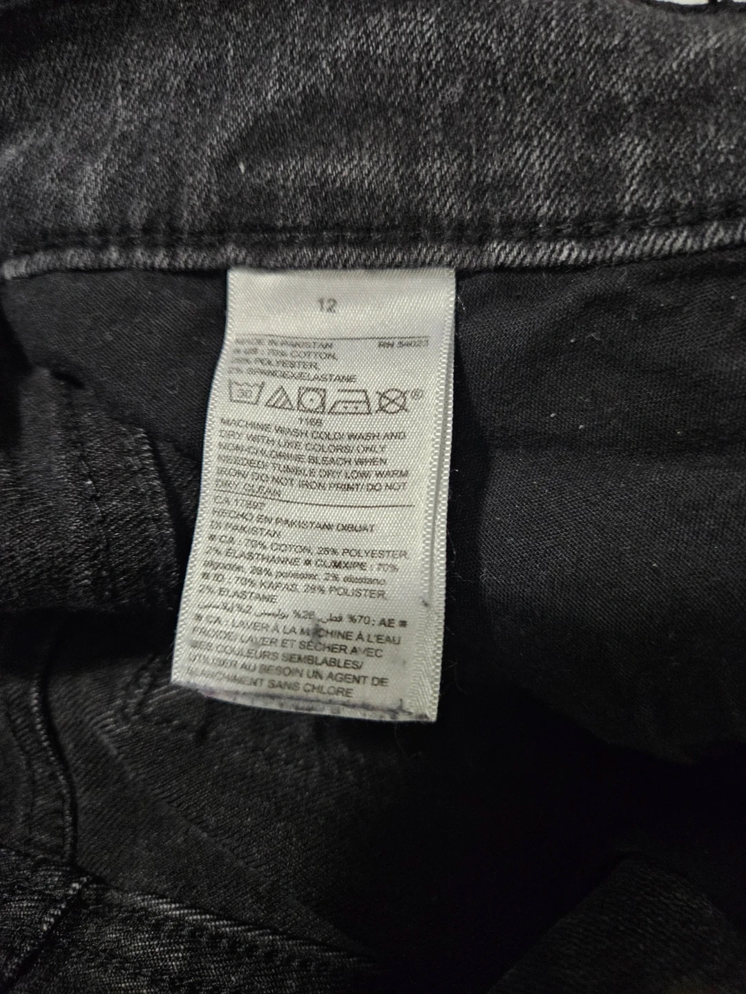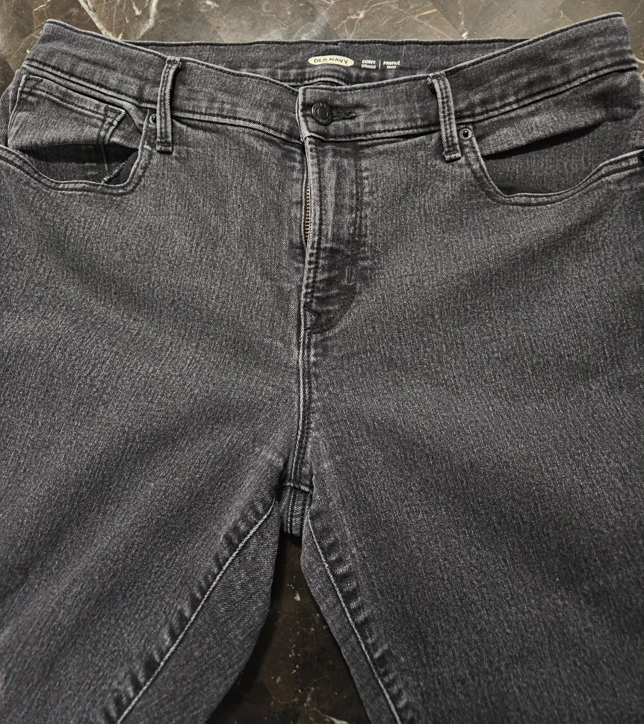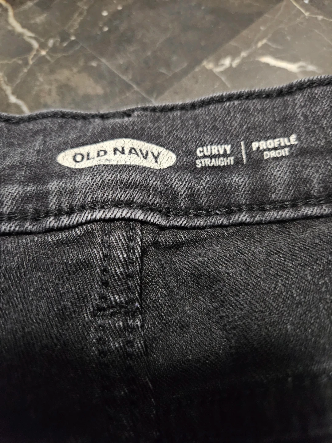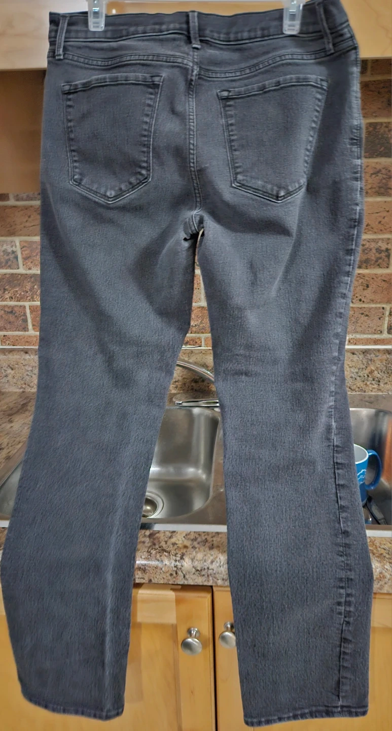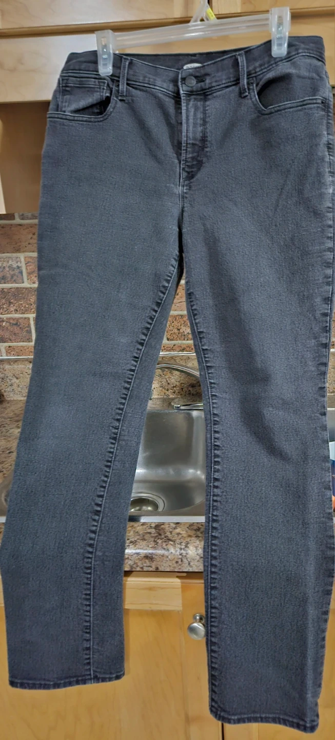 Selling a pair of Old Navy jeans in a size 12. They're the Curvy Straight profile. The material is a blend of cotton, polyester, and elastane. They're black in colour, perfect for everyday wear! Pick up east mountain.