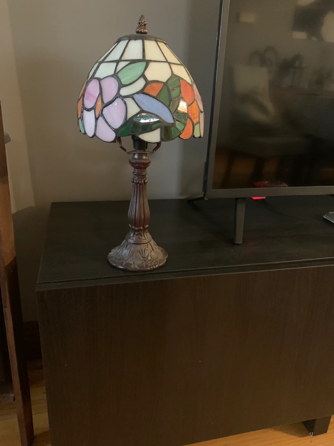 Selling a beautiful stained glass table lamp! It has a lovely floral design with a bronze-coloured base. It would look great in any room!