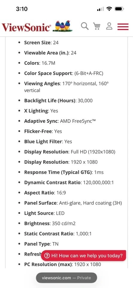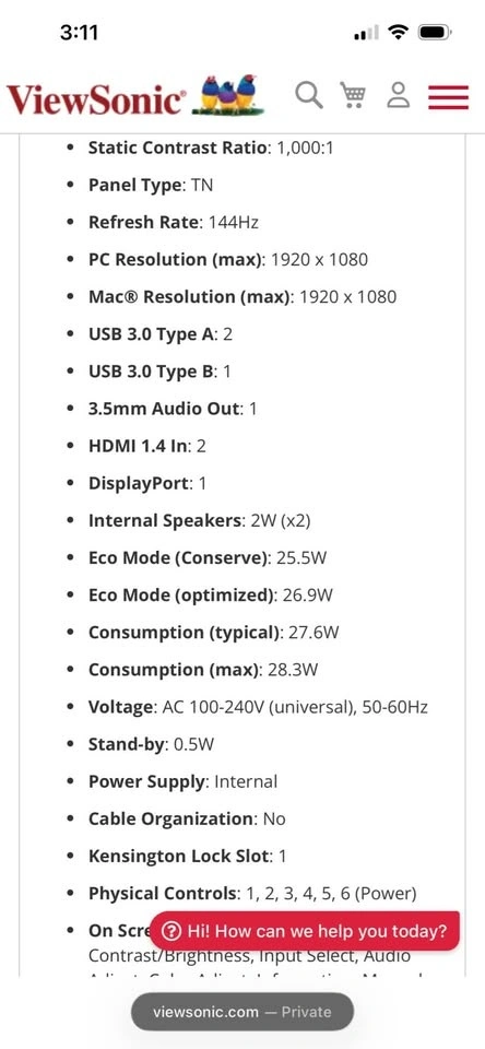 Viewsonic XG2402 24" 1080P Full HD 144Hz Gaming Monitor W/ FreeSync Premium and RGB.