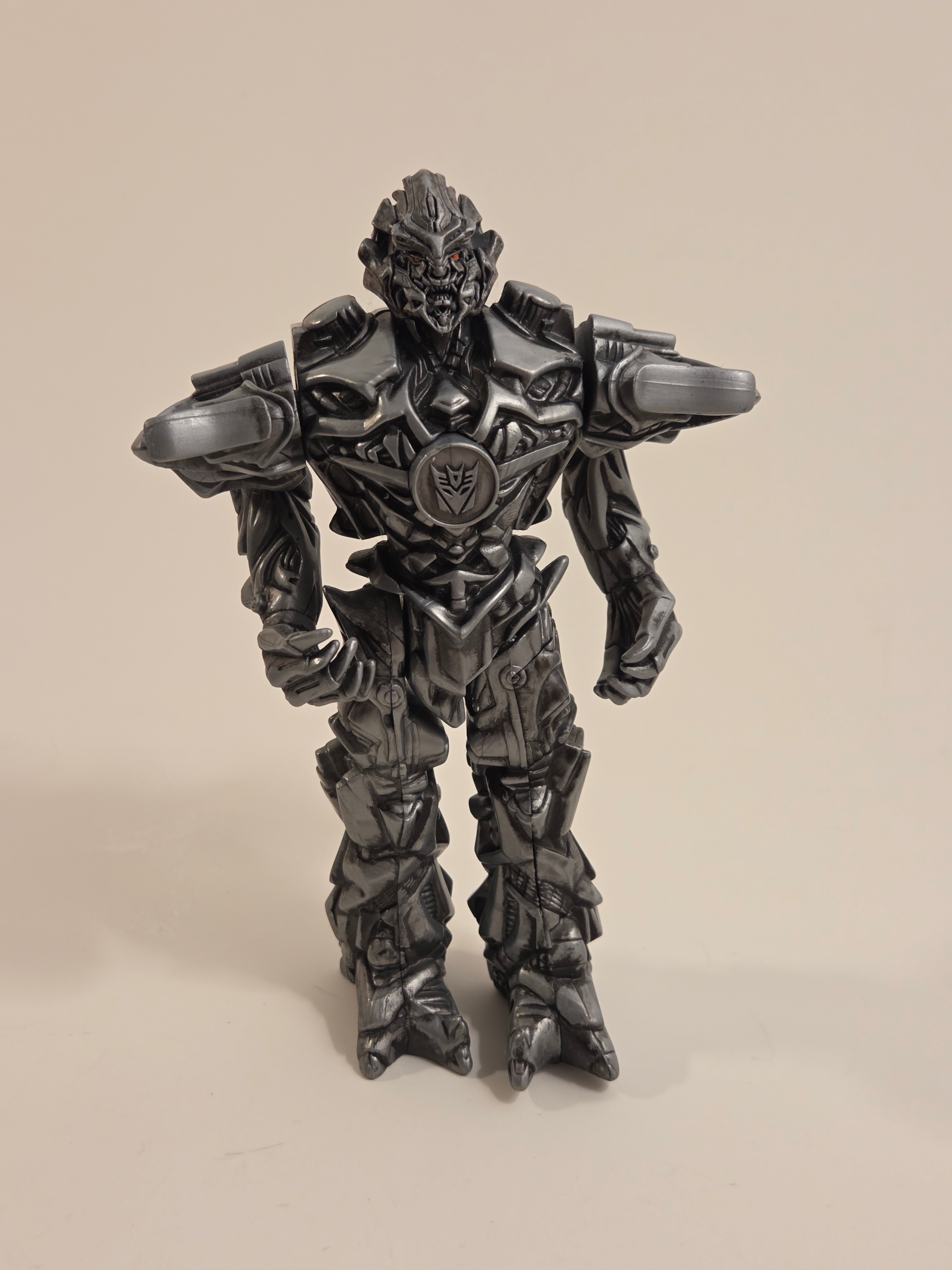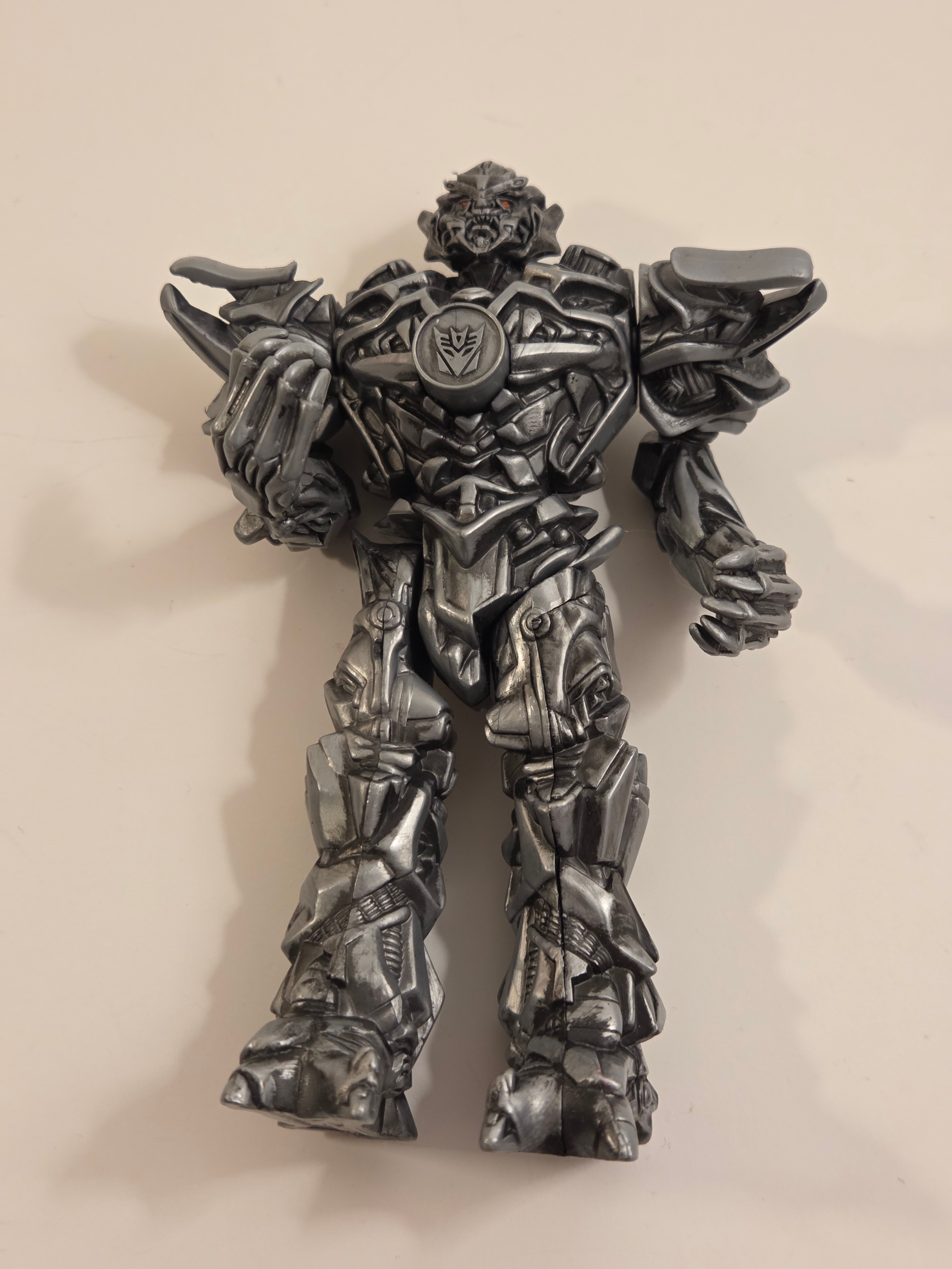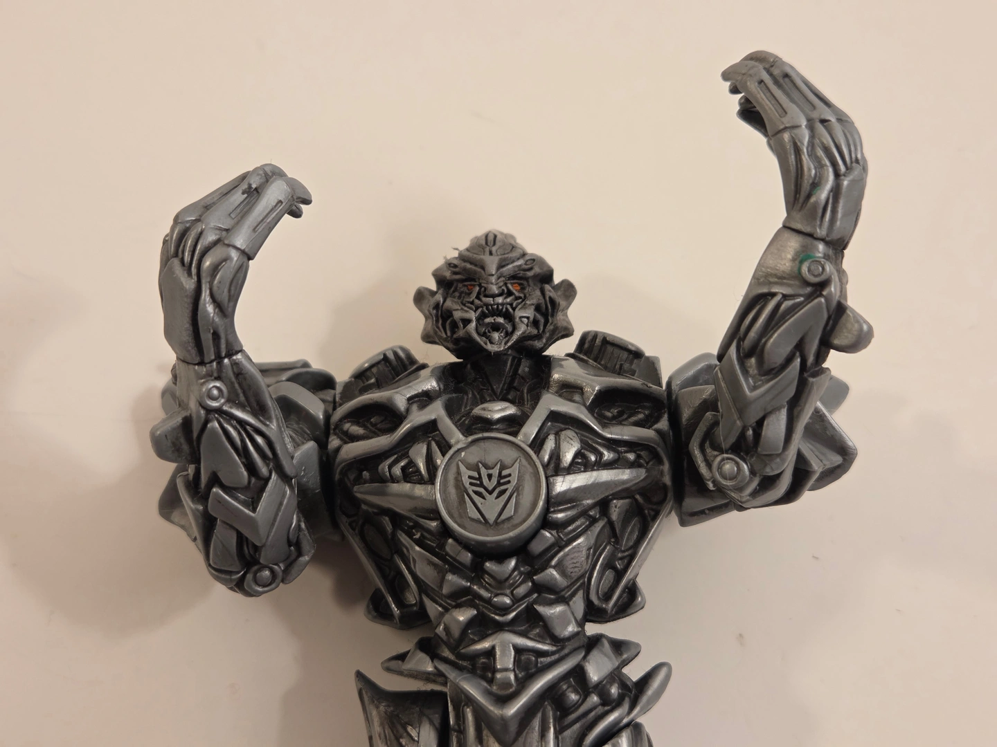 Transformers Megatron figure in solid pre-owned condition. Detailed movie-style sculpt with Decepticon insignia on the chest. Simple articulation – arms raise/rotate; stands well; non-transforming. No accessories included.
