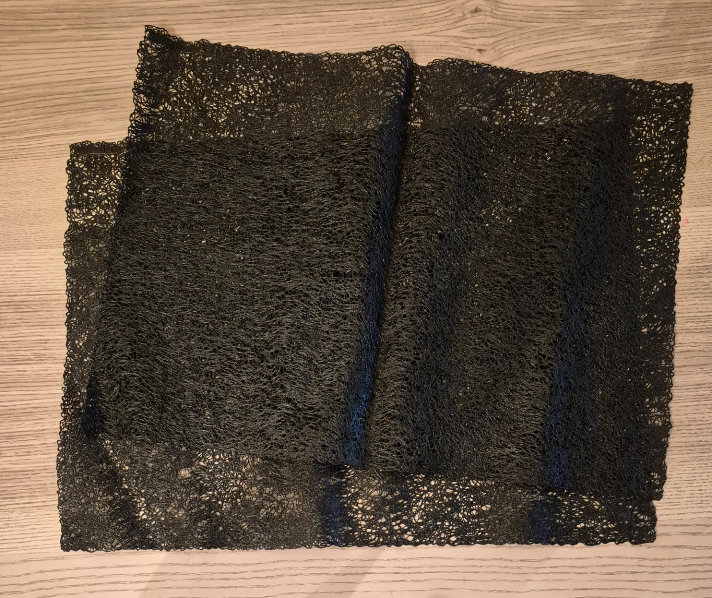 Set of 2 black placemats with bucle design. Great condition and ready to use on your dining table! Easy to clean material.