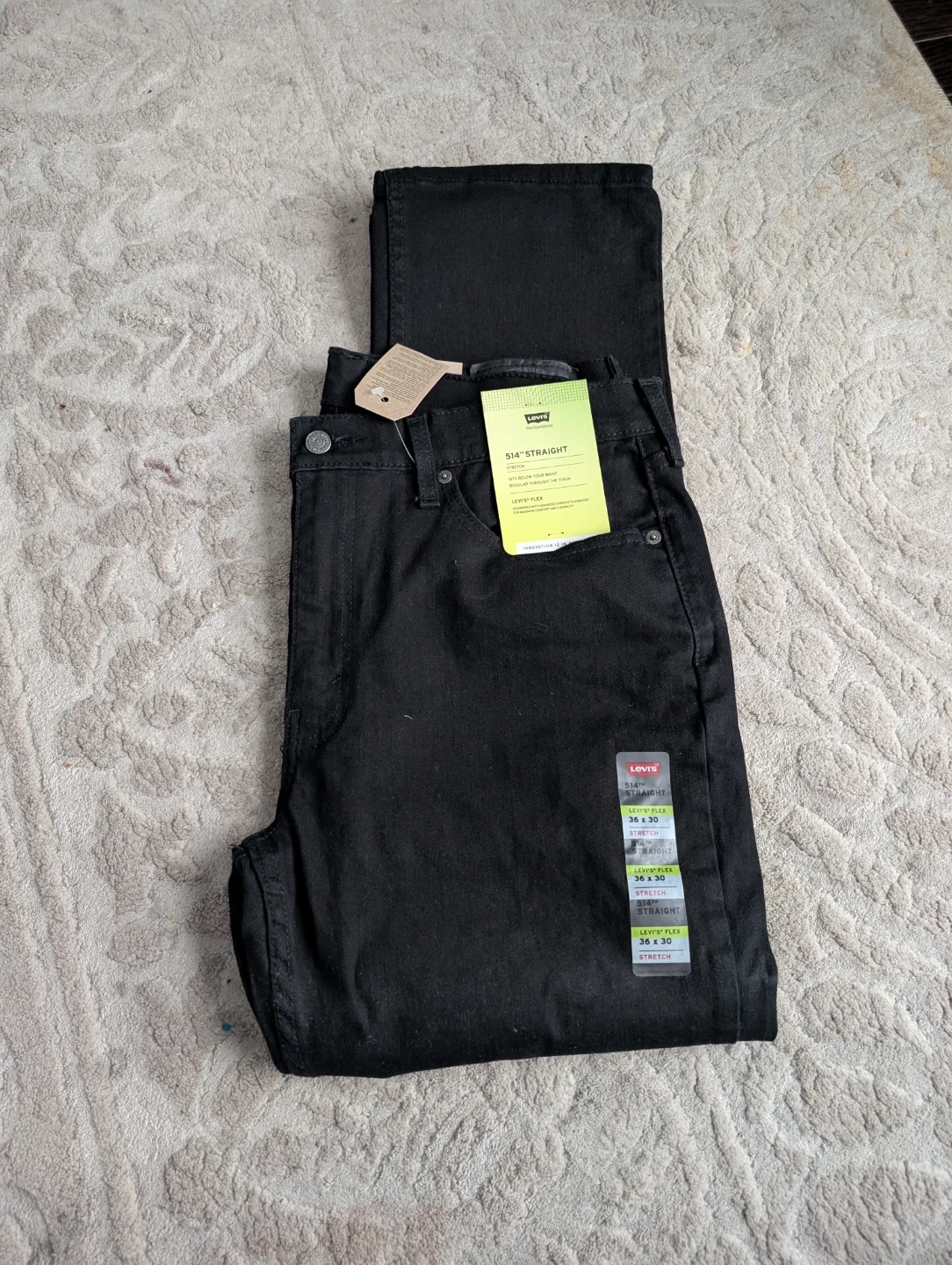 These are brand new Levi's 514 straight fit jeans in size 36x30. They are a classic black colour and have a comfortable stretch. Great for everyday wear