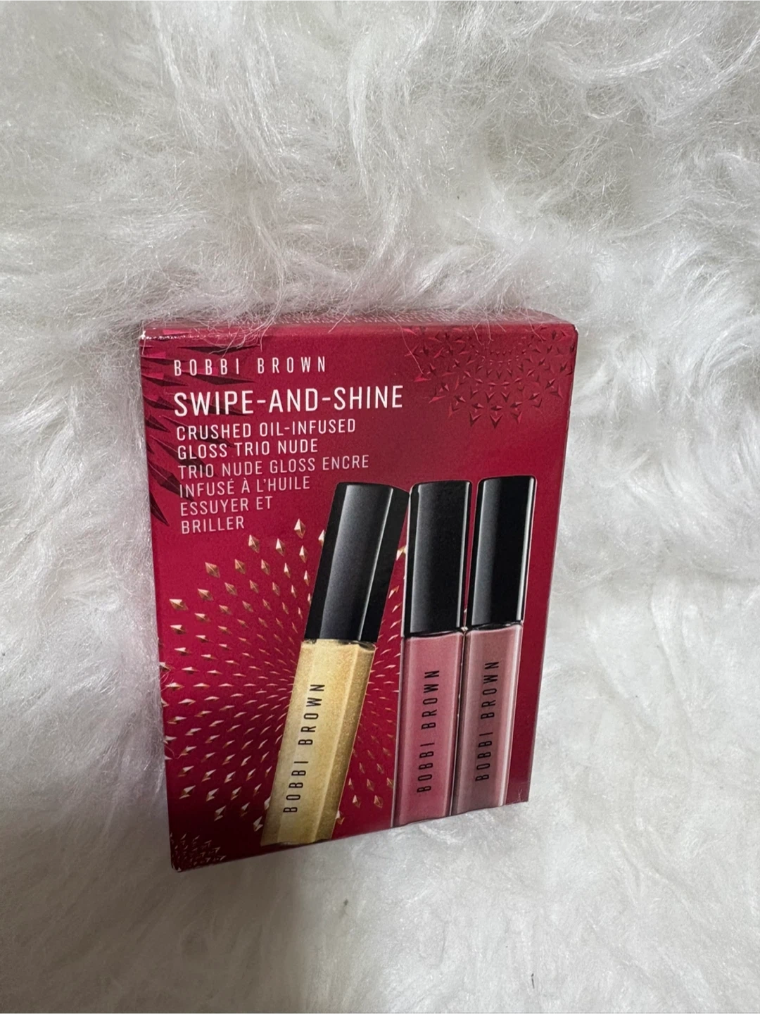 Selling a Bobbi Brown Swipe-and-Shine Crushed Oil-Infused Gloss Trio Nude! This set includes three gorgeous nude shades to give your lips a beautiful, glossy finish. Perfect for adding a touch of shine to your everyday look