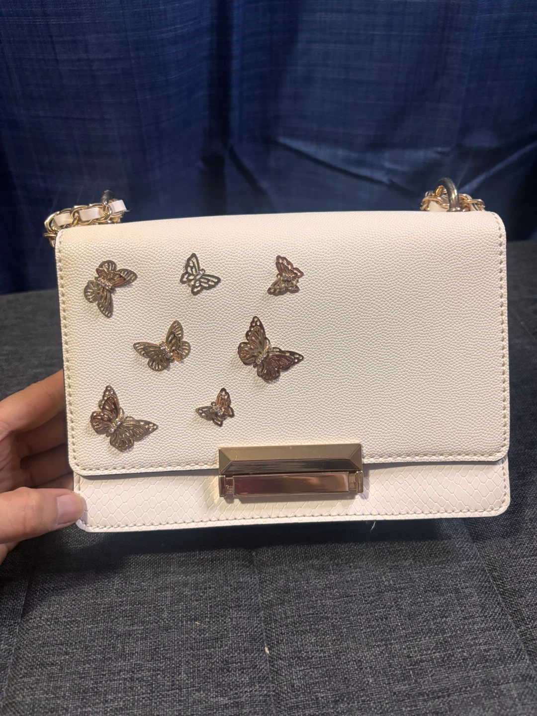 Cute ALDO crossbody bag in a white colour with butterfly details! Has a chain strap and a small pocket inside. Used once.