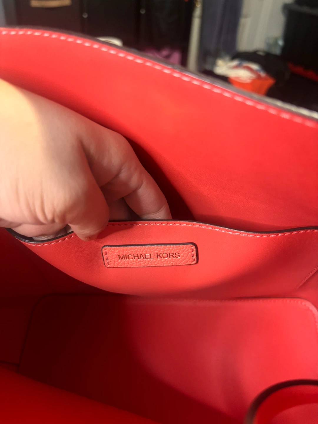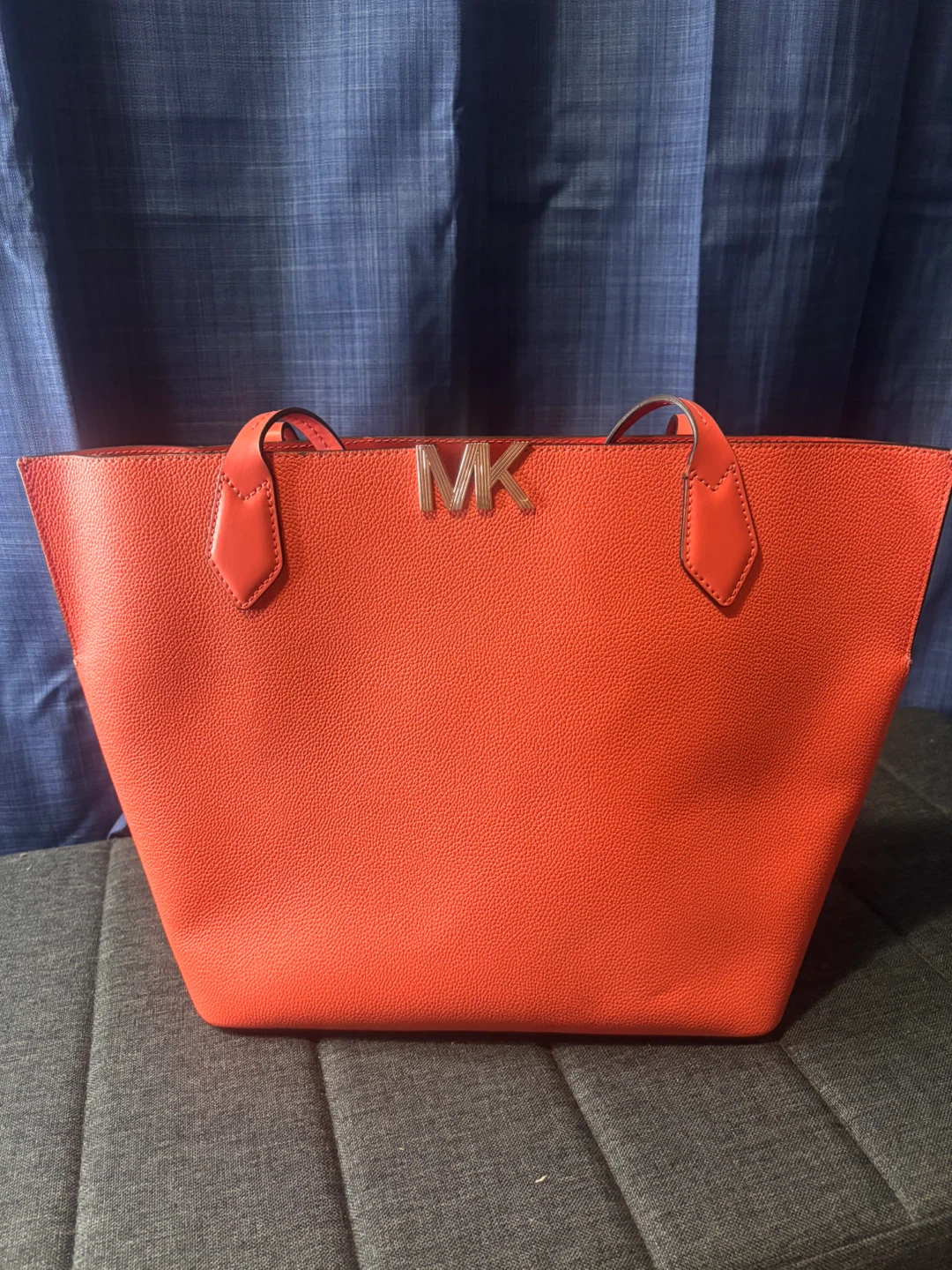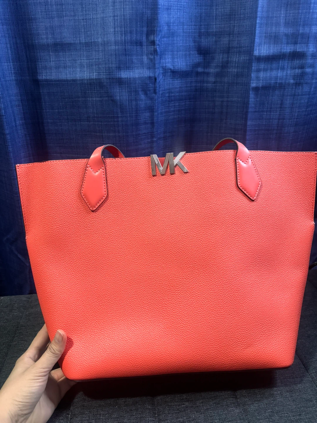 A vibrant coral Michael Kors tote bag is up for grabs! This stylish bag is perfect for everyday use. It's in great condition and ready to add a pop of colour to your wardrobe.