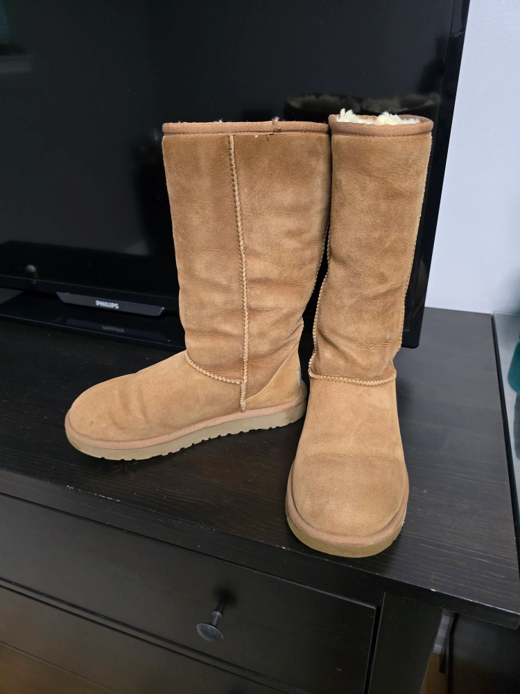 Selling a pair of gently used women's UGG Classic Tall boots in size 7. They are in good condition and ready for the cold weather! The classic tall style is super cozy and comfortable for everyday wear.