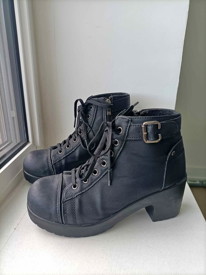 ‼️NEED GONE ASAP‼️ Black Lace-Up Ankle Boots with a Chunky Block Heel and a side Buckle Strap - $10 - Size 245mm Pickup Intersection - Kingston Rd & Dundas St E PickUp Only Cash Only Fastest Pickup