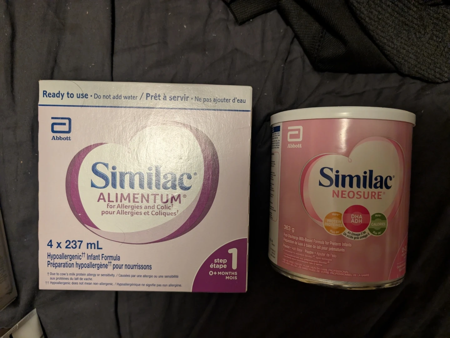 Selling Similac Alimentum and Neosure infant formula. The Alimentum is hypoallergenic and comes in a 4 x 237 mL box. The Neosure is for premature infants and comes in a 363 g can. Both are ready to use and do not require the addition of water. Expiry date is 2026 May 01 and March 2026
